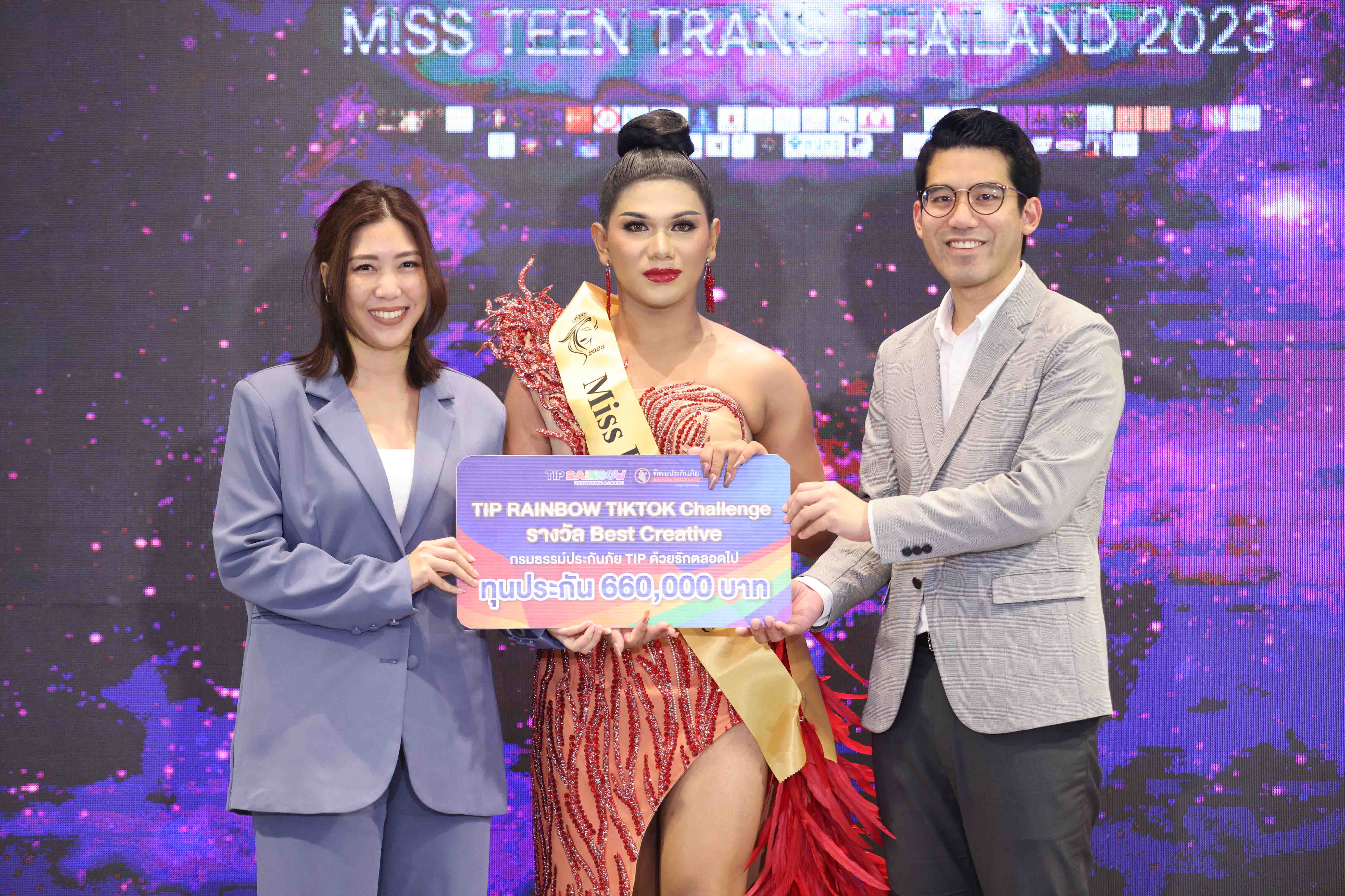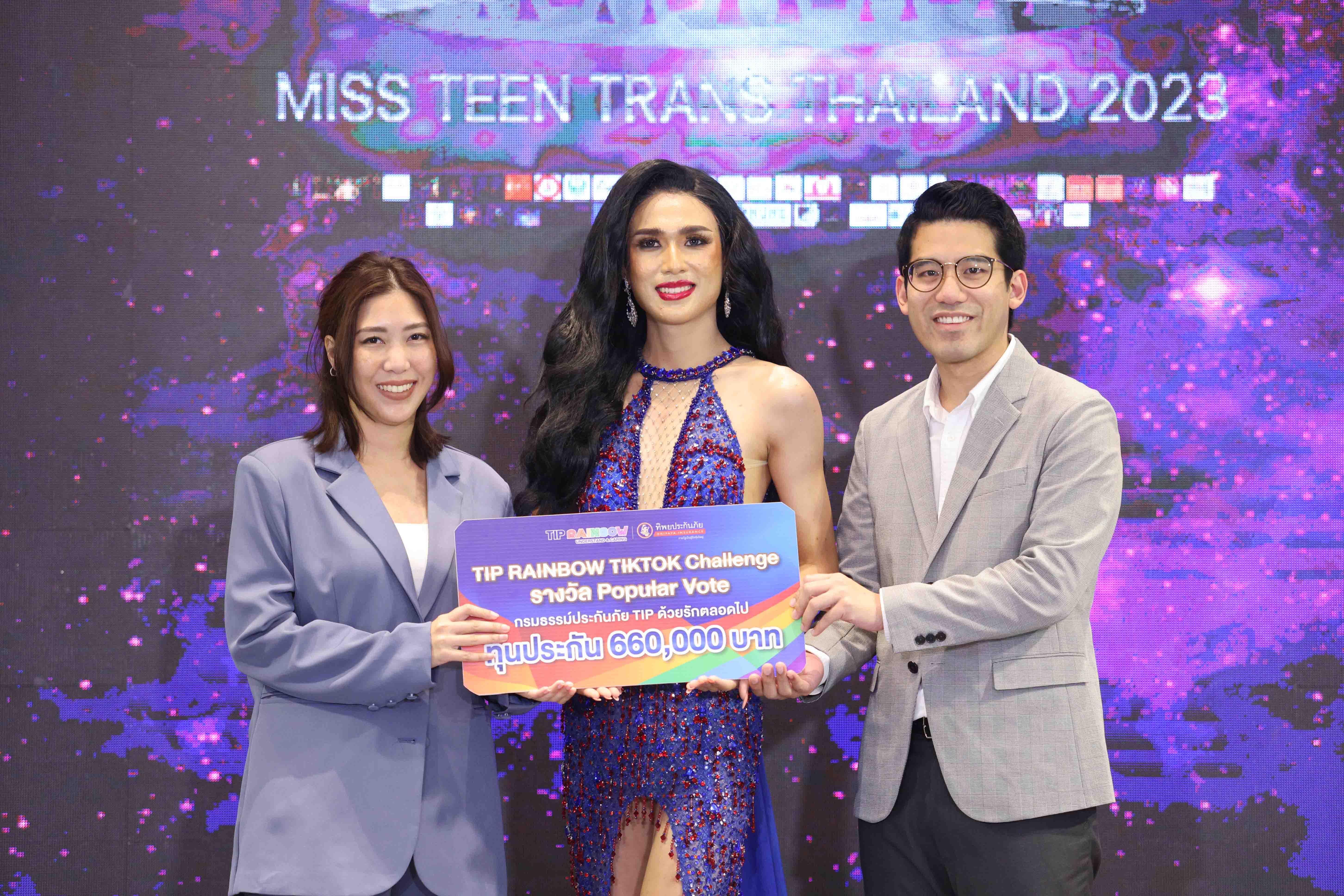 โดยบริษัทฯได้มอบแผนประกันภัย “TIP ด้วยรักตลอดไป” คุ้มครองอุบัติเหตุและภาวะโคม่าจากโรคร้ายแรง ให้กับผู้ได้รับตำแหน่ง Miss Teen Trans Thailand 2023 และมอบรางวัลพิเศษ TIP Rainbow TIKTOK Challenge รวม 3 รางวัล ทุนประกันรวม 1,980,000 บาท ณ คูณ โฮเทล สุขุมวิท