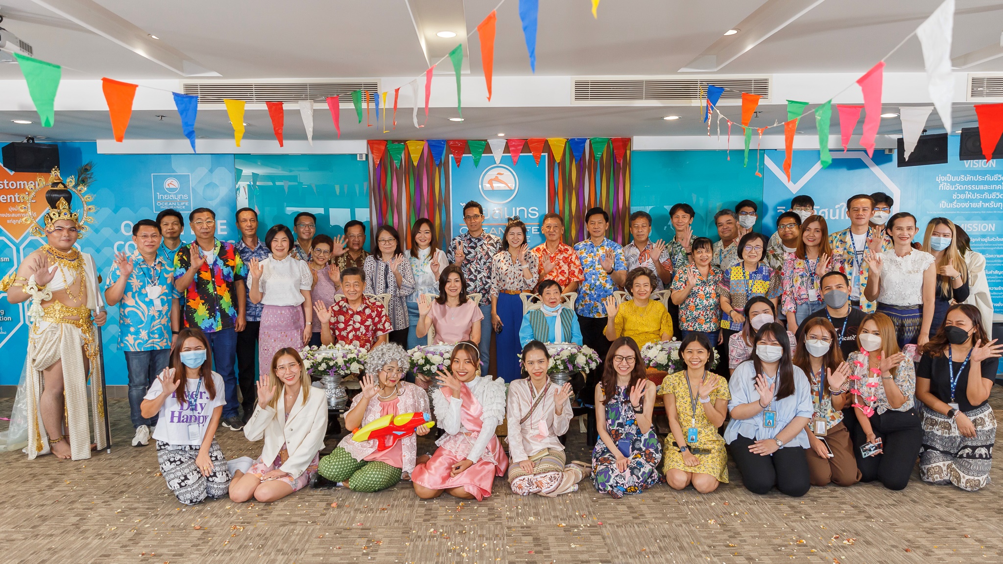 11 เมษายน 2566 : บมจ.ไทยสมุทรประกันชีวิต รักคือพลังของชีวิต โดยคุณนุสรา (อัสสกุล) บัญญัติปิยพจน์ ประธานเจ้าหน้าที่บริหารและกรรมการผู้จัดการ (CEO) พร้อมด้วยคณะผู้บริหารและพนักงานร่วมกิจกรรม “OCEAN LIFE Songkran Festival 2023” ซึ่งจัดต่อเนื่องเป็นประจำทุกปี เพื่อสืบสานและรักษาไว้ซึ่งขนบธรรมเนียมประเพณีอันดีงามของไทย และเพื่อความเป็นสิริมงคลแก่ชีวิตเนื่องในโอกาสวันขึ้นปีใหม่ของไทย ตลอดจนแสดงออกถึงความรักสมัครสมานสามัคคีของ OCEAN LIFE ไทยสมุทร ซึ่งสอดคล้องกับ Core Value ขององค์กร “Collaboration & Teamwork มุ่งมั่นร่วมแรงร่วมใจทำงานเป็นทีม”