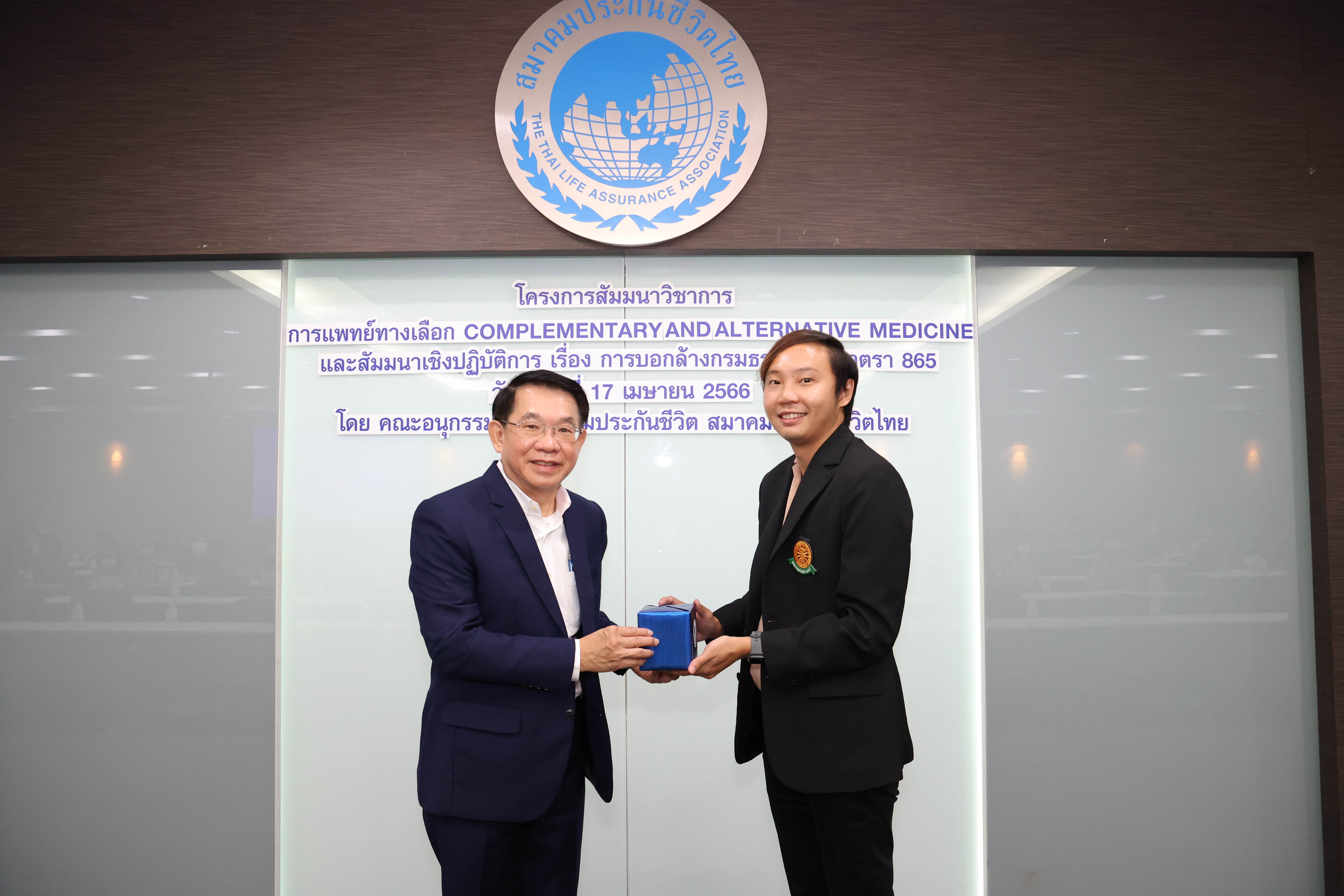 19 เมษายน 2566 : สมาคมประกันชีวิตไทย โดยคณะอนุกรรมการสินไหมประกันชีวิต จัดสัมมนาวิชาการเชิงปฏิบัติการ เรื่อง “การแพทย์ทางเลือก COMPLEMENTARY AND ALTERNATIVE MEDICINE และ เรื่อง การบอกล้างกรมธรรม์ตามมาตรา 865” ซึ่งได้รับเกียรติจาก ผศ.ดร.ภูริทัต กนกกังสดาล อาจารย์ประจำสถานการแพทย์แผนไทยประยุกต์ คณะแพทยศาสตร์ มหาวิทยาลัยธรรมศาสตร์ เป็นวิทยากรบรรยายในหัวข้อ “การแพทย์ทางเลือก COMPLEMENTARY AND ALTERNATIVE MEDICINE”
