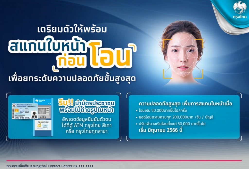 ทั้งนี้ การยืนยันตัวตนด้วยใบหน้าก่อนโอนเงิน เริ่มในเดือนมิถุนายน 2566 สำหรับลูกค้าที่ยังไม่เคยมีข้อมูลการยืนยันตัวตนด้วยใบหน้า หรือ ข้อมูลไม่อัพเดต สามารถเพิ่มข้อมูลได้ เพียงนำบัตรประชาชนไปขอดำเนินการผ่านธนาคารกรุงไทยทุกสาขา และ ตู้ ATM ที่มีสัญลักษณ์ Confirm ID (ตู้สีเทา) โดยอัพเดตข้อมูล ครั้งเดียวใช้ได้ทั้ง แอปฯ Krungthai NEXT และเป๋าตัง สอบถามข้อมูลเพิ่มเติมได้ที่ Krungthai Contact Center 02-111-1111 ![]()