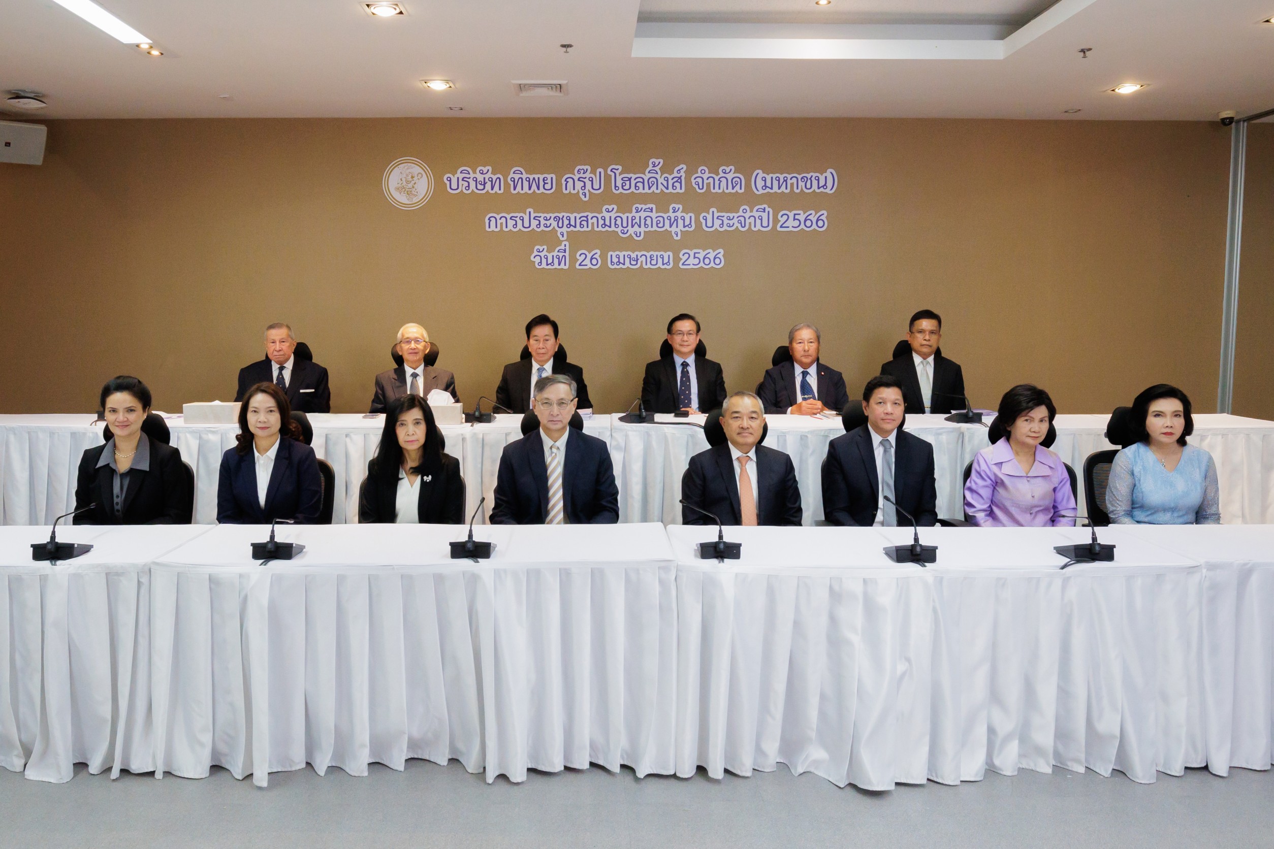 26 เมษายน 2566 : นายสมใจนึก เองตระกูล ประธานกรรมการ พร้อมด้วยคณะกรรมการบริษัทและและผู้บริหารระดับสูงของ บริษัท ทิพย กรุ๊ป โฮลดิ้งส์ จำกัด (มหาชน) หรือ TIPH แถลงผลการดำเนินงาน ในรอบปีที่ผ่านมาในการประชุมสามัญผู้ถือหุ้นประจำปี 2566 ผ่านระบบออนไลน์ (E-AGM) ณ ห้องประชุม บริษัท ทิพยประกันภัย จำกัด (มหาชน) อาคารสำนักงานใหญ่