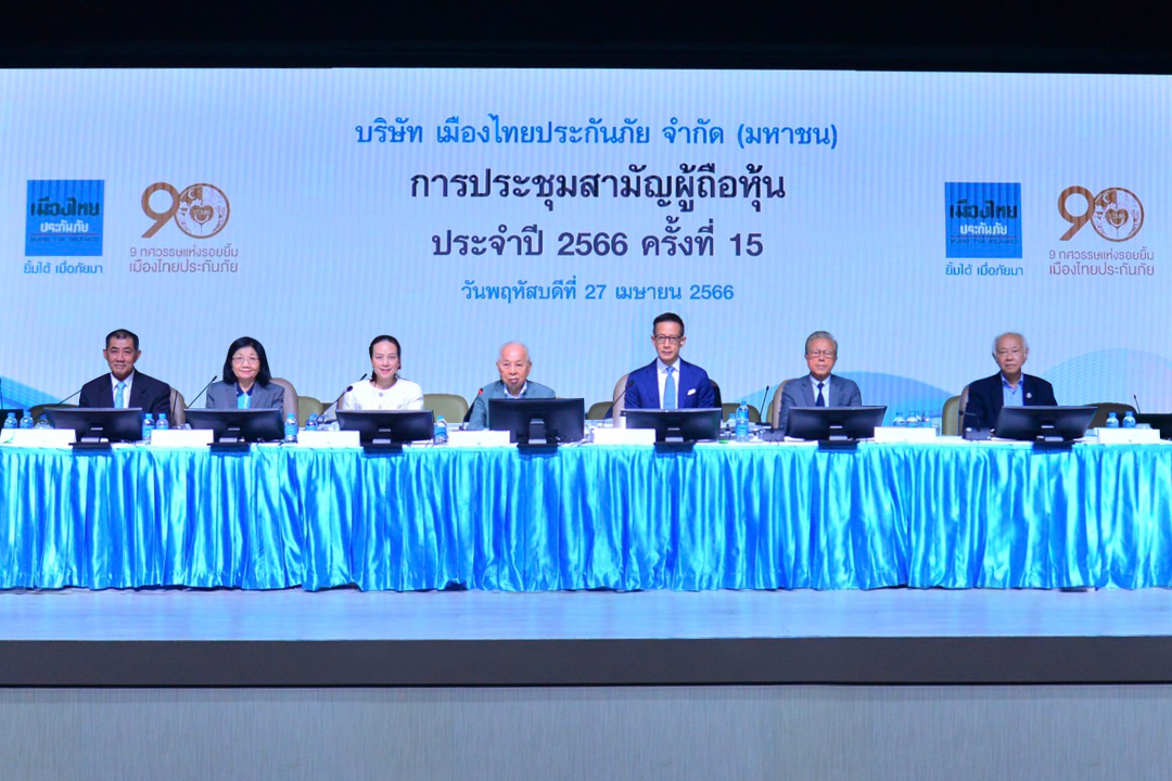 28 เมษายน 2566 : โพธิพงษ์ ล่ำซำ ประธานกรรมการ และ นวลพรรณ ล่ำซำ กรรมการผู้จัดการ และประธานเจ้าหน้าที่บริหาร บริษัท เมืองไทยประกันภัย จำกัด (มหาชน) หรือ MTI จัดงานประชุมสามัญผู้ถือหุ้น ประจำปี 2566 พร้อมด้วย สาระ ล่ำซำ, ชูศักดิ์ ดิเรกวัฒนชัย , ดร.อโศก วงศ์ชะอุ่ม, พงษ์เทพ ผลอนันต์ และ ปุณฑริกา ใบเงิน เข้าร่วมการประชุมฯ เมื่อวันพฤหัสบดี ที่ 27 เมษายน 2566 ณ หอประชุมเมืองไทยประกันชีวิต กรุงเทพฯ ![]()
