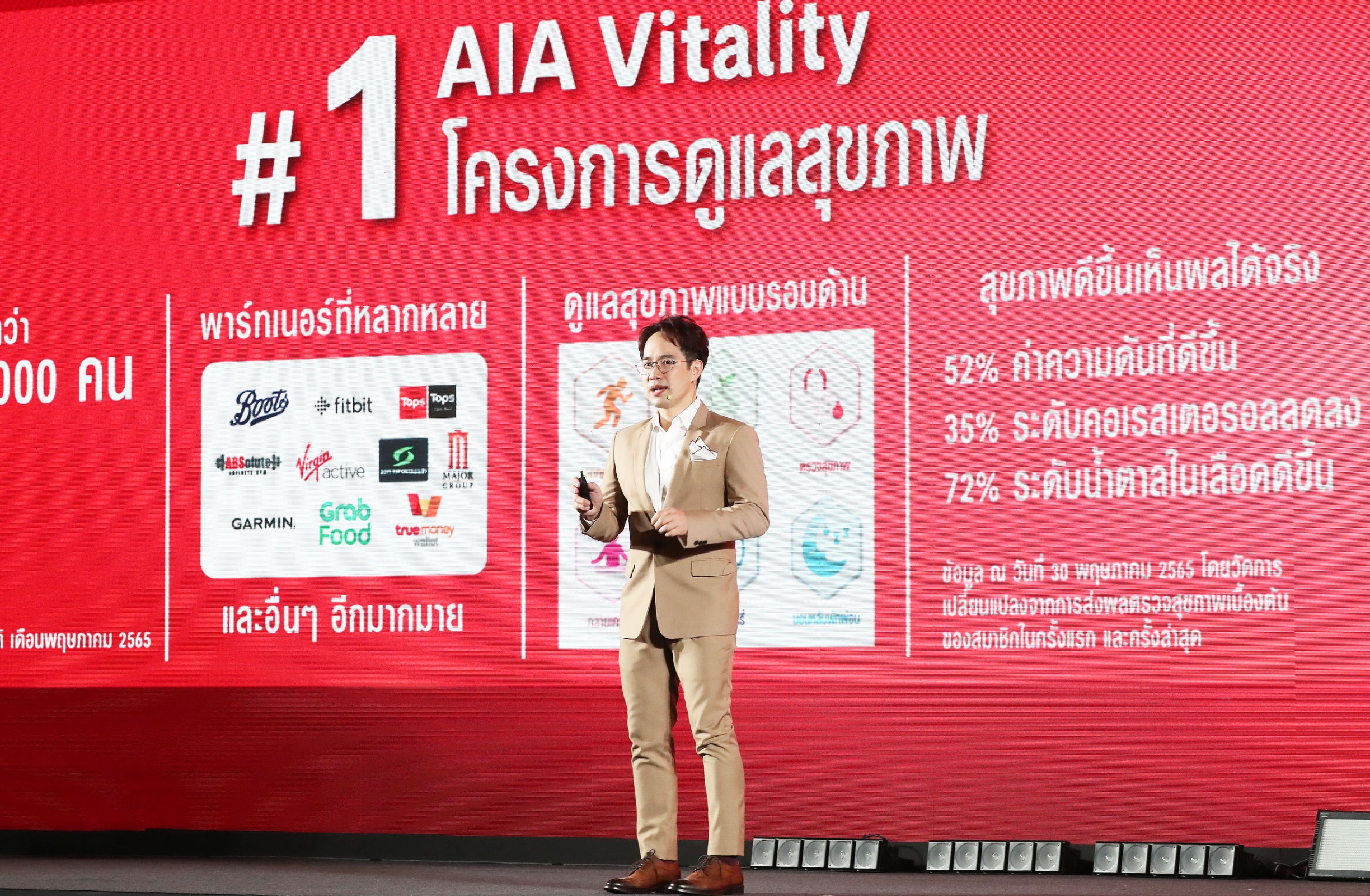 เอไอเอ ไวทัลลิตี้ โครงการสุขภาพที่ใหญ่ที่สุดในประเทศไทย[1] เพื่อมุ่งสร้างแรงจูงใจให้ลูกค้าปรับเปลี่ยนพฤติกรรมการดำเนินชีวิต ให้หันมาใส่ใจสุขภาพมากขึ้น ออกกำลังกายอย่างสม่ำเสมอ รับประทานอาหารที่มีประโยชน์ และพักผ่อนให้เพียงพอ พร้อมสะสมคะแนนเอไอเอ ไวทัลลิตี้ เพื่อปรับสถานะให้สูงขึ้น และยังได้รับสิทธิประโยชน์หลากหลายจากพันธมิตรชั้นนำ อีกทั้งมีสิทธิรับเงินคืนค่าการประกันภัยตามสถานะเอไอเอ ไวทัลลิตี้[3] ตลอดทั้งโครงการ