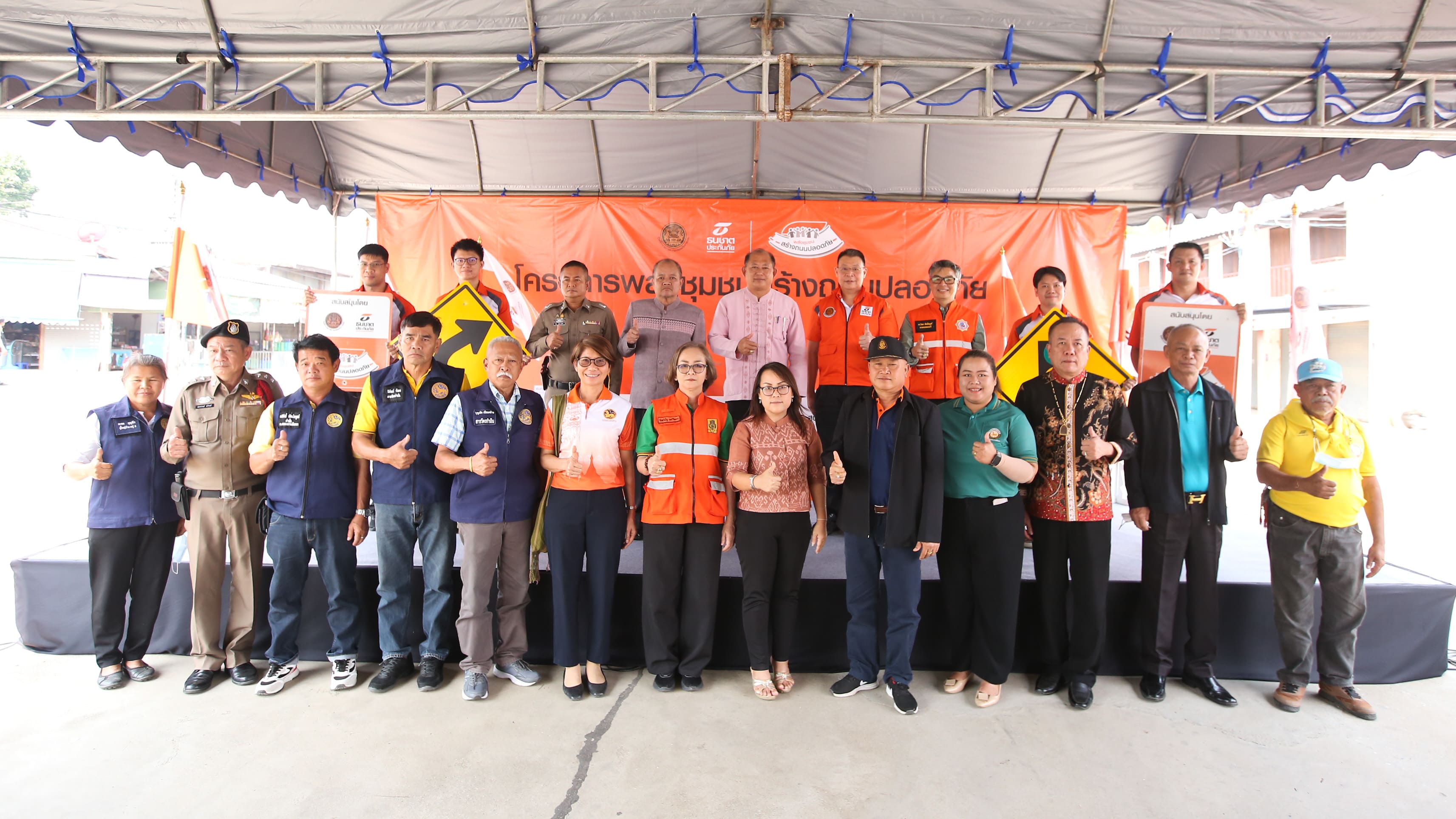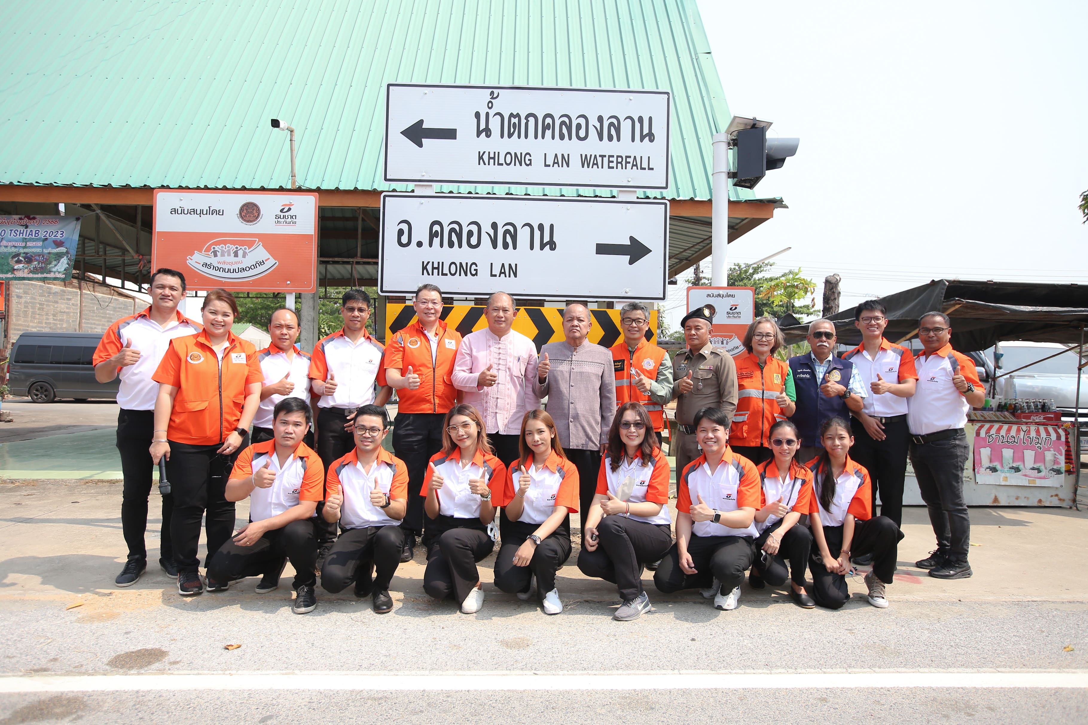 จ.กำแพงเพชร, 2 พฤษภาคม 2566 : สุพัตรา คล้ายทิม รองผู้ว่าราชการจังหวัดกำแพงเพชร เป็นประธานในพิธีลงนามบันทึกความเข้าใจความร่วมมือโครงการ “พลังชุมชนสร้างถนนปลอดภัย” โดยมี ศุภวาร เกษมศรี ณ อยุธยา Head of Broker Marketing บริษัท ธนชาตประกันภัย จำกัด (มหาชน) นายธีรศักดิ์ ลิขิต นายอำเภอคลองลาน วิทยา ทัศนไพบูลย์ นายกเทศมนตรีตำบลคลองลานพัฒนา และพันตำรวจเอกพิสิษฐ์ สงวนเขียว ผู้กำกับการสถานีตำรวจภูธรคลองลาน ร่วมลงนาม เพื่อแก้ไขปัญหา 3 จุดเสี่ยงอุบัติเหตุ ด้วยการติดตั้งอุปกรณ์ลดความเสี่ยงบนถนน รวม 14 รายการ จำนวนกว่า 30 ชุด ทั้งงานตีเส้นจราจร เส้นชะลอความเร็ว และทางม้าลาย รวมถึงการติดตั้งป้ายเตือนเขตโรงเรียน ป้ายบังคับหยุด พร้อมสัญญาณไฟกระพริบ โดยเทศบาลตำบลคลองลานพัฒนา จะรับผิดชอบดูแลแปรับปรุงให้อุปกรณ์ต่างๆ ให้มีความพร้อมใช้งานเพื่อประโยชน์ต่อการลดความเสี่ยงบนถนนในชุมชนอย่างต่อเนื่อง