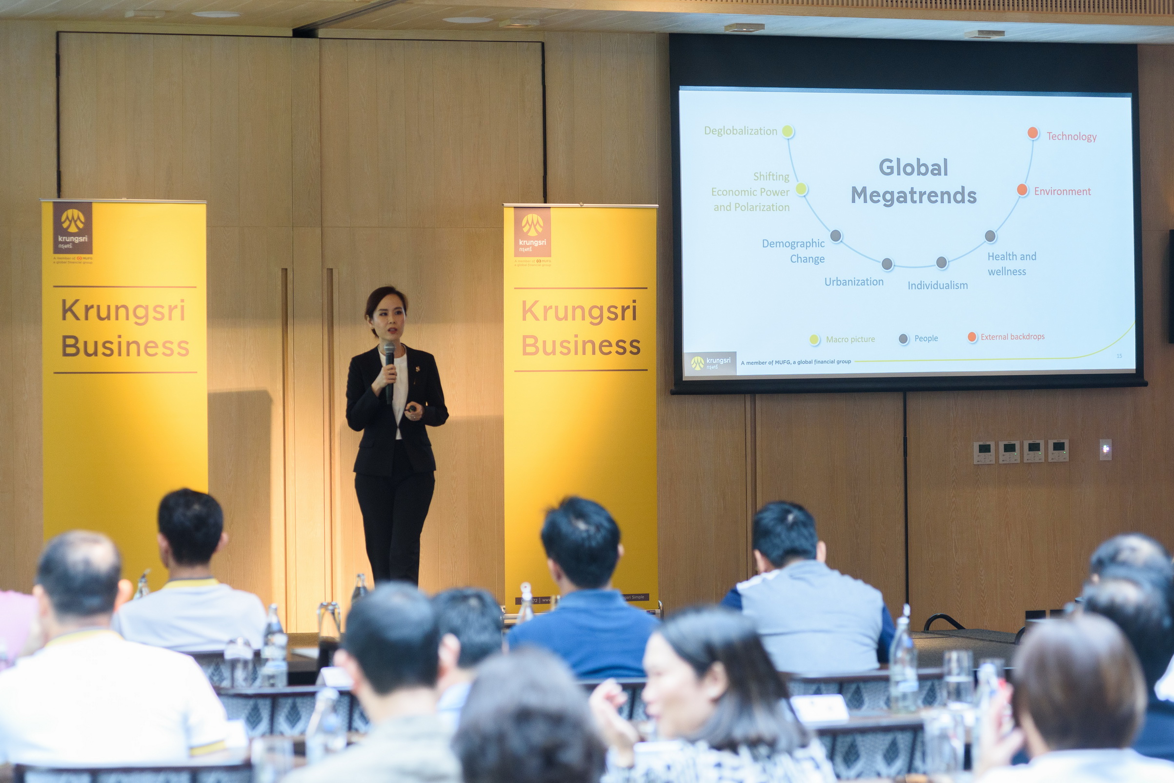 6. Health and Wellness คนให้ความสำคัญกับสุขภาพและความเป็นอยู่ที่ดีมากขึ้น 7. Environment เรื่องของสิ่งแวดล้อมกลายเป็นส่วนหนึ่งของชีวิตประจำวันและในระดับประเทศ 8. Technology เทคโนโลยีและนวัตกรรมต่างๆ จะเข้ามา Disrupt ธุรกิจและชีวิตประจำวันมากขึ้น ทั้งหมดนี้ นับเป็นความท้าทายที่ผู้ประกอบการต้องตระหนักและปรับเปลี่ยนกลยุทธ์การดำเนินธุรกิจให้สอดคล้องกับกระแสหรือโอกาสที่เกิดขึ้น เพื่อสร้างความเติบโตทางธุรกิจไปพร้อมกับการเติบโตทางเศรษฐกิจของไทย