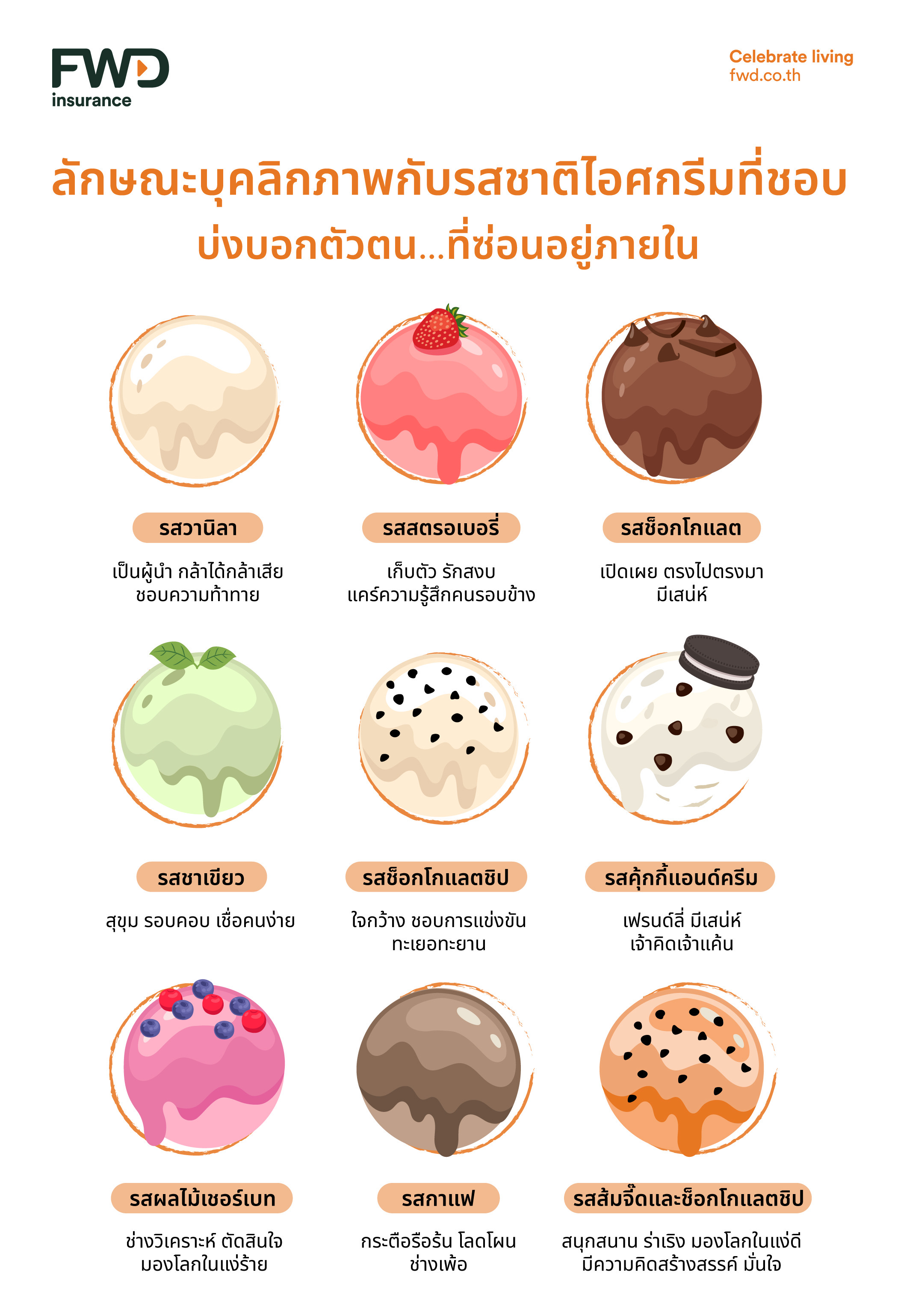 เพื่อส่งต่อ Brand Experience ผ่านเรื่องราวของไอศกรีมของหวานสุดโปรดในช่วงอากาศร้อน FWD ประกันชีวิต ขอชวนทุกคนร่วมทายนิสัยจากไอศกรีมรสชาติที่ชอบ อยากรู้ตัวตนคุณเอง ... ลองเลือกรสชาติไอศกรีมที่คุณชื่นชอบว่าตรงกับนิสัยคุณหรือไม่*