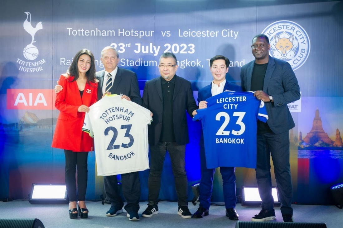 กรุงเทพฯ, 18 พฤษภาคม 2566 : เอไอเอ ผู้สนับสนุนหลักระดับโลกของสโมสรท็อตแน่ม ฮ็อตสเปอร์ นำโดย คุณรพีพร วงศ์ทองคำ ผู้อำนวยการฝ่ายสื่อสารองค์กรและภาพลักษณ์ เอไอเอ ประเทศไทย ร่วมงานแถลงข่าวอย่างเป็นทางการ Tottenham Hotspur vs Leicester City โดยสโมสรท็อตแน่ม ฮ็อตสเปอร์ ยอดสโมสรแห่งศึกพรีเมียร์ลีก อังกฤษ จะขนทัพมาเยือนประเทศไทยเป็นครั้งแรก เพื่อลงเตะเกมอุ่นเครื่องกับสโมสรเลสเตอร์ ซิตี้ เจ้าของแชมป์ พรีเมียร์ลีก ฤดูกาล 2015/16 ซึ่งจะทำการแข่งขันกันในวันที่ 23 กรกฎาคม 2566 ณ ราชมังคลากีฬาสถาน