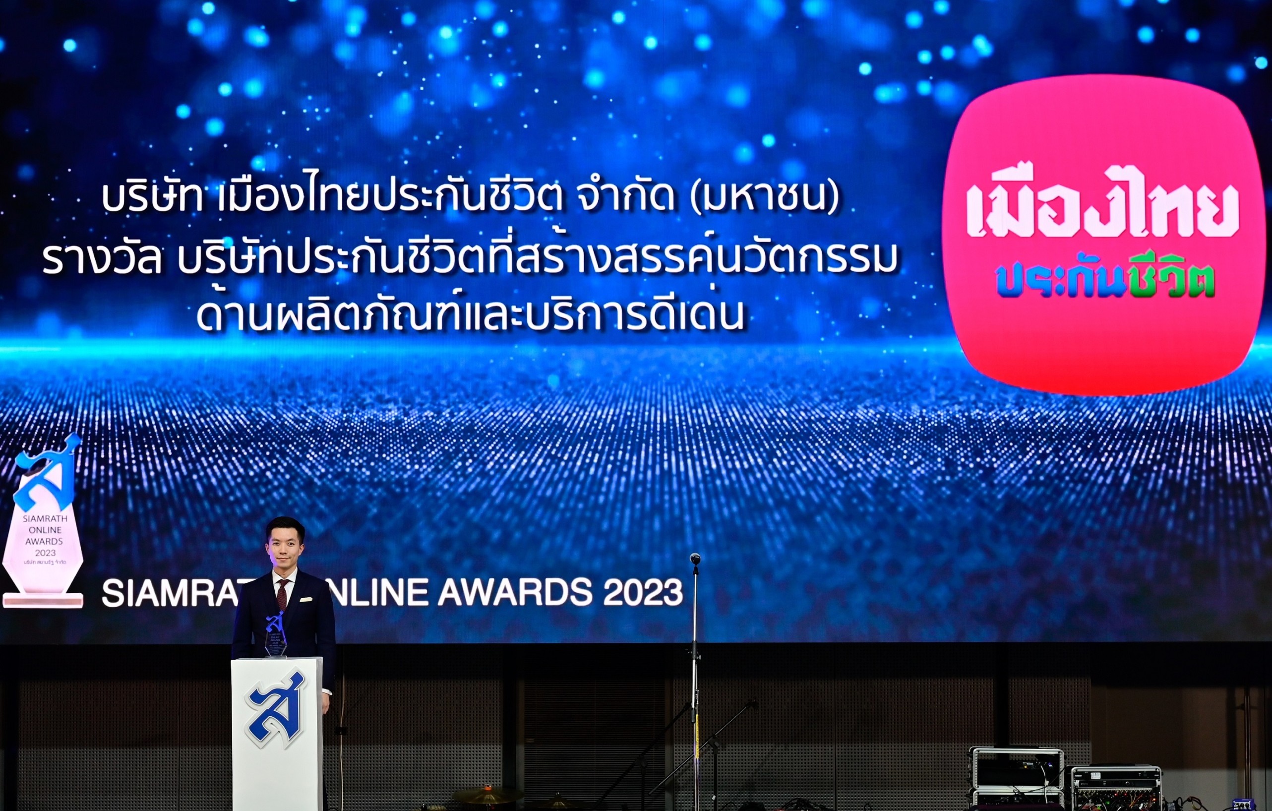 22 พฤษภาคม 2566 : ปาณัท สุทธินนท์ รองกรรมการผู้จัดการ บริษัท เมืองไทยประกันชีวิต จำกัด (มหาชน) ผู้แทนบริษัทฯ รับรางวัล “ประกันชีวิตที่สร้างสรรค์นวัตกรรมด้านผลิตภัณฑ์และบริการดีเด่น” ต่อเนื่องเป็นปีที่ 3 จากงานมอบรางวัล SIAMRATH ONLINE AWARD 2023 รางวัลดังกล่าวถือเป็นรางวัลอันทรงเกียรติ ที่ตอกย้ำถึงการเป็นบริษัทประกันชีวิตชั้นนำ ที่ให้ความสำคัญกับการพัฒนาด้านนวัตกรรมผลิตภัณฑ์ประกันชีวิตและสุขภาพ รวมถึงการให้บริการอย่างต่อเนื่อง