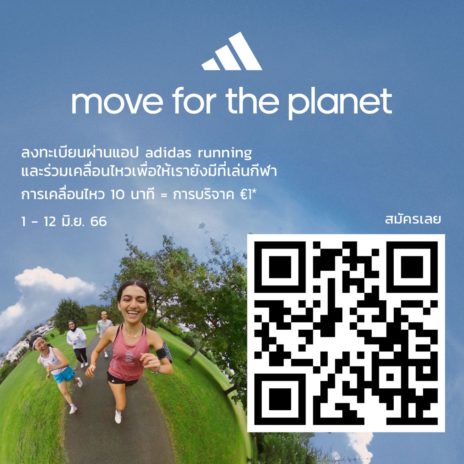 MOVE FOR THE PLANET ถือเป็นอีกหนึ่งก้าวสำคัญของอาดิดาสเพื่อสานต่อพันธกิจในการสร้างโลกที่ดียิ่งขึ้นให้กับชุมชนนักกีฬาอย่างยั่งยืน ซึ่งสอดคล้องกับเป้าหมายของอาดิดาสที่ต้องการเปลี่ยนการใช้วัสดุโพลีเอสเตอร์ผลิตใหม่เป็นวัสดุโพลีเอสเตอร์รีไซเคิลในการผลิตสินค้าของอาดิดาสอย่างสิ้นเชิงภายในปี 2567 โดยในปีที่ผ่านมาอาดิดาสได้เปลี่ยนมาใช้วัสดุรีไซเคิลแทนวัสดุโพลีเอสเตอร์เดิมแล้วกว่า 96%
