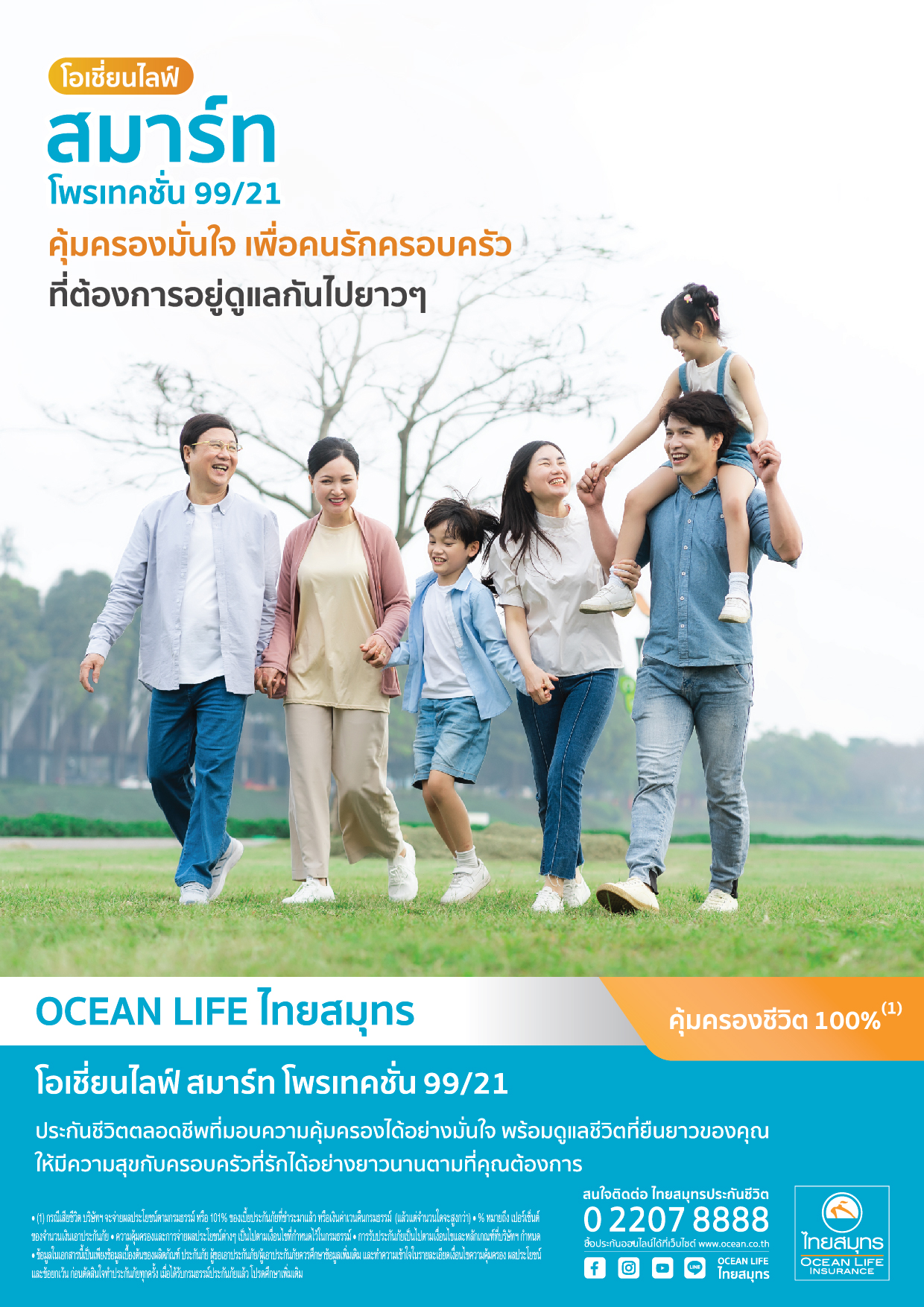 ล่าสุดจึงได้เปิดตัว “โอเชี่ยนไลฟ์ สมาร์ท โพรเทคชั่น 99/21” แบบประกันคุ้มครองตลอดชีพที่ช่วยสร้างความมั่นใจในการใช้ชีวิตอย่างมีความสุขกับครอบครัวที่รักได้อย่างยาวนาน โดยมีระยะเวลาคุ้มครองจนถึงอายุ 99 ปี คุ้มครองกรณีเสียชีวิตสูงถึง 100% ของจำนวนเงินเอาประกันภัย หรือ 101% ของเบี้ยประกันภัยที่ชำระมาแล้ว หรือเงินค่าเวนคืนกรมธรรม์ (แล้วแต่จำนวนใดจะสูงกว่า) หรือหากผู้เอาประกันมีชีวิตอยู่จนอายุครบ 99 ปี รับเงินครบกำหนดสัญญา 100% ของจำนวนเงินเอาประกันภัย หรือ 101% ของเบี้ยประกันภัยที่ชำระมาแล้ว (แล้วแต่จำนวนใดจะสูงกว่า)
