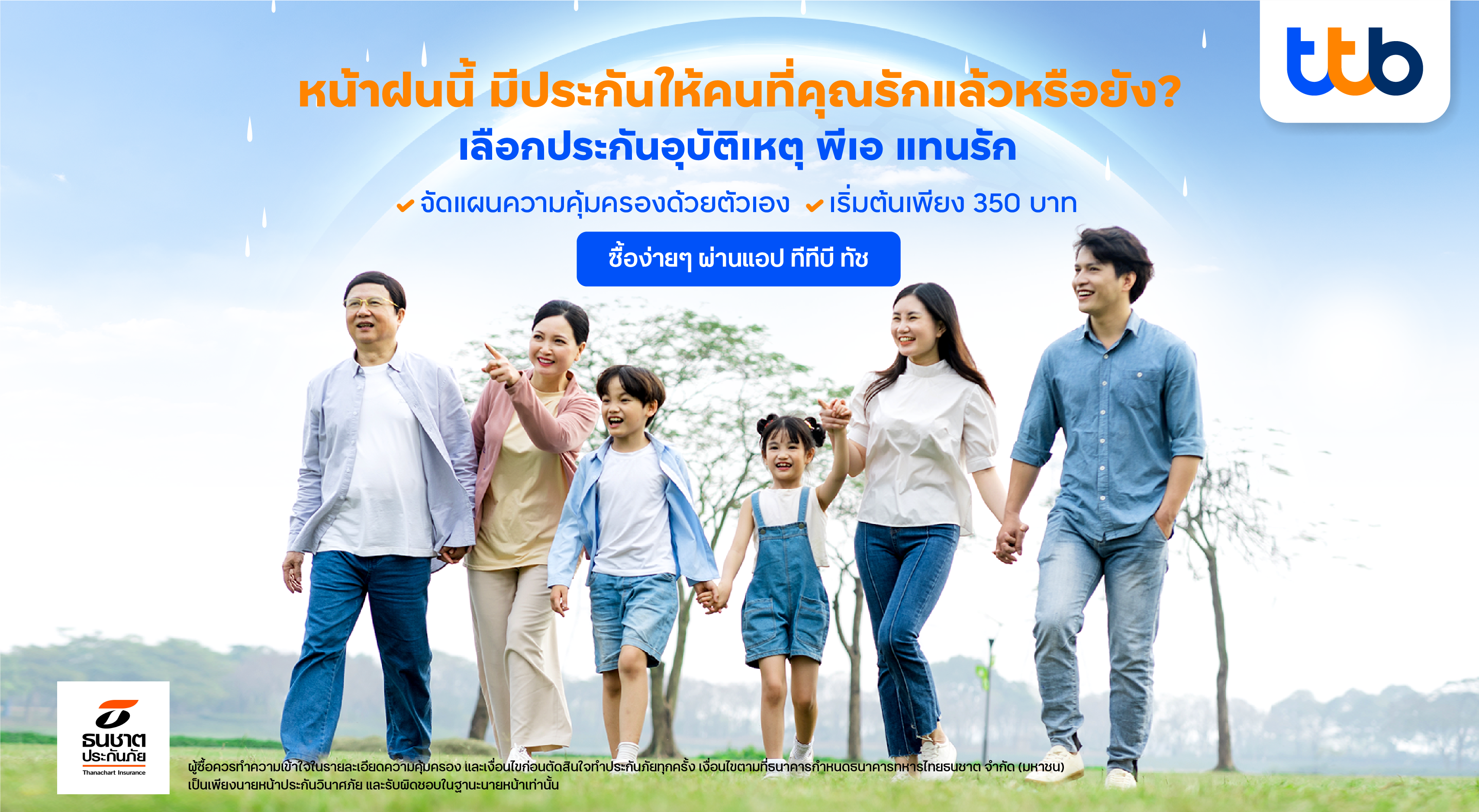 กรุงเทพฯ 30 พฤษภาคม 2566 : นายชวมนต์ วินิจตรงจิตร รองประธานเจ้าหน้าที่บริหาร หัวหน้าบริหารผลิตภัณฑ์พันธมิตรทางธุรกิจกลุ่มลูกค้าบุคคล ทีเอ็มบีธนชาต เปิดเผยว่า ธนาคารในฐานะผู้นำตลาดประกันภัยมีการพัฒนาผลิตภัณฑ์เพื่อช่วยให้ลูกค้ามีชีวิตทางการเงินที่ดีขึ้น ได้ร่วมมือกับ บริษัท ธนชาตประกันภัย จำกัด (มหาชน) เปิดตัว “ประกันภัยอุบัติเหตุส่วนบุคคล พีเอ แทนรัก” ซึ่งจะสร้างประสบการณ์ใหม่ให้ลูกค้าด้วยจุดเด่นที่แตกต่างและตรงใจ
