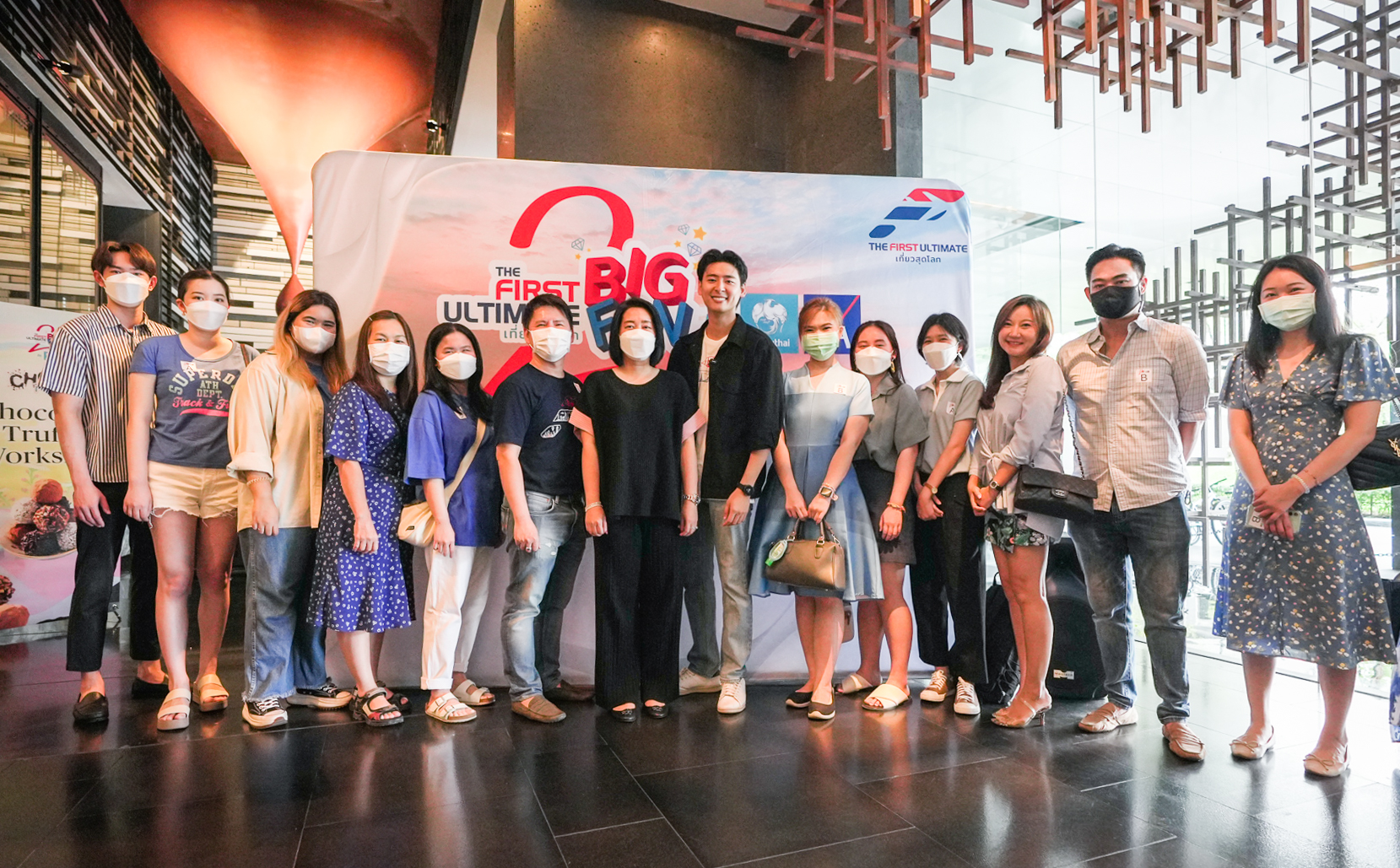 7 มิถุนายน 2566 : บมจ.กรุงไทย-แอกซ่า ประกันชีวิต ร่วมกับรายการ The First Ultimate ส่งมอบความหวาน พร้อมประสบการณ์สุดพิเศษ เอาใจลูกค้าคนสำคัญกับกิจกรรม “Choco Time” นำโดย คุณสุกัญญา อิสรานุวัฒน์ชัย รองประธานอาวุโส ฝ่ายสื่อสารการตลาดและภาพลักษณ์องค์กร บมจ.กรุงไทย-แอกซ่า ประกันชีวิต (คนที่ 7 จากซ้าย) ให้เกียรติกล่าวต้อนรับลูกค้าและเปิดงาน