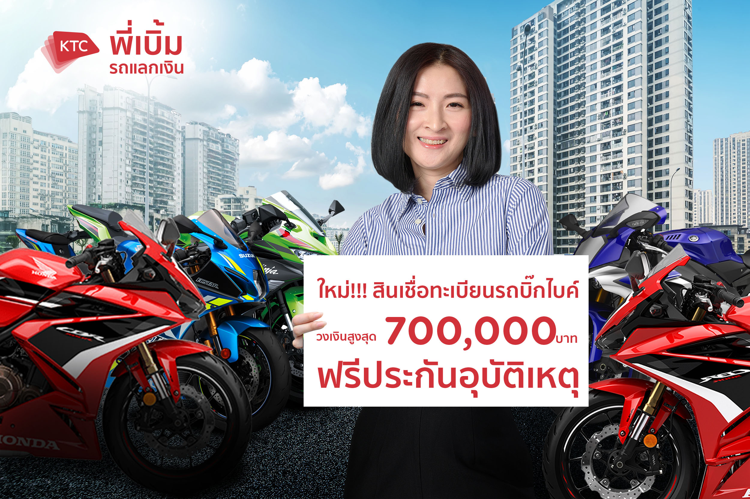 โดยล่าสุด เคทีซี พี่เบิ้ม รถแลกเงิน ได้เปิดตัวสินเชื่อทะเบียนรถจักรยานยนต์บิ๊กไบค์ ซึ่งเป็นสินเชื่อแบบผ่อนชำระรายงวด เจาะกลุ่มเจ้าของรถบิ๊กไบค์ 5 แบรนด์ ที่มีอายุไม่เกิน 10 ปี ได้แก่ ฮอนด้า คาวาซากิ ซูซุกิ ยามาฮ่าและเวสป้า เพียงใช้เล่มทะเบียนรถฯ มายื่นขอสินเชื่อเป็นหลักประกัน โดยไม่จำเป็นต้องโอนเล่ม ไม่ต้องเปลี่ยนชื่อเจ้าของ และยังสามารถนำสำเนาทะเบียนรถไปติดต่อหน่วยงานราชการ เพื่อต่อ พ.ร.บ.รถยนต์ หรือต่อประกันภัยรถยนต์ได้ตามปกติ
