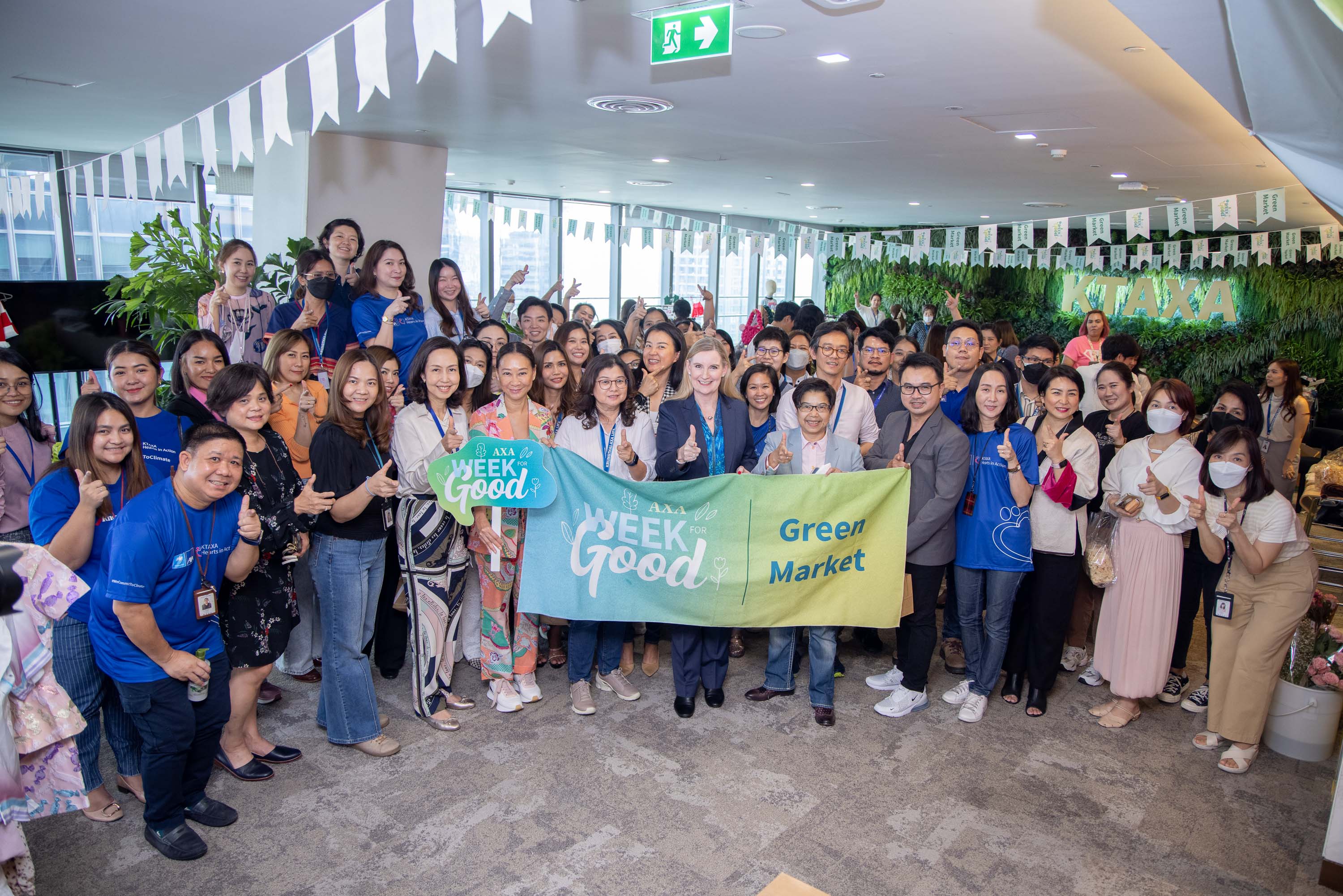 9 มิถุนายน 2566 : บมจ.กรุงไทย-แอกซ่า ประกันชีวิต ในฐานะ ‘Green Insurer’ หรือผู้นำบริษัทประกันที่ใส่ใจสิ่งแวดล้อม นำโดย คุณแซลลี่ โอฮาร่า ประธานเจ้าหน้าที่บริหาร (แถวหน้า คนที่ 7 จากขวา) และคุณบุปผาวดี โอวรารินท์ ประธานเจ้าหน้าที่บริหาร ฝ่ายทรัพยากรบุคคลและภาพลักษณ์องค์กรและการสื่อสารองค์กร (แถวหน้า คนที่ 6 จากขวา) จัดกิจกรรมใน ‘Week for Good หรือ สัปดาห์แห่งการทำความดี ซึ่งเป็นกิจกรรมที่ทุกบริษัทของแอกซ่าทั่วโลกจัดขึ้นพร้อมกัน และในปีนี้จัดขึ้นช่วงระหว่างวันที่ 5-9 มิถุนายน 2566