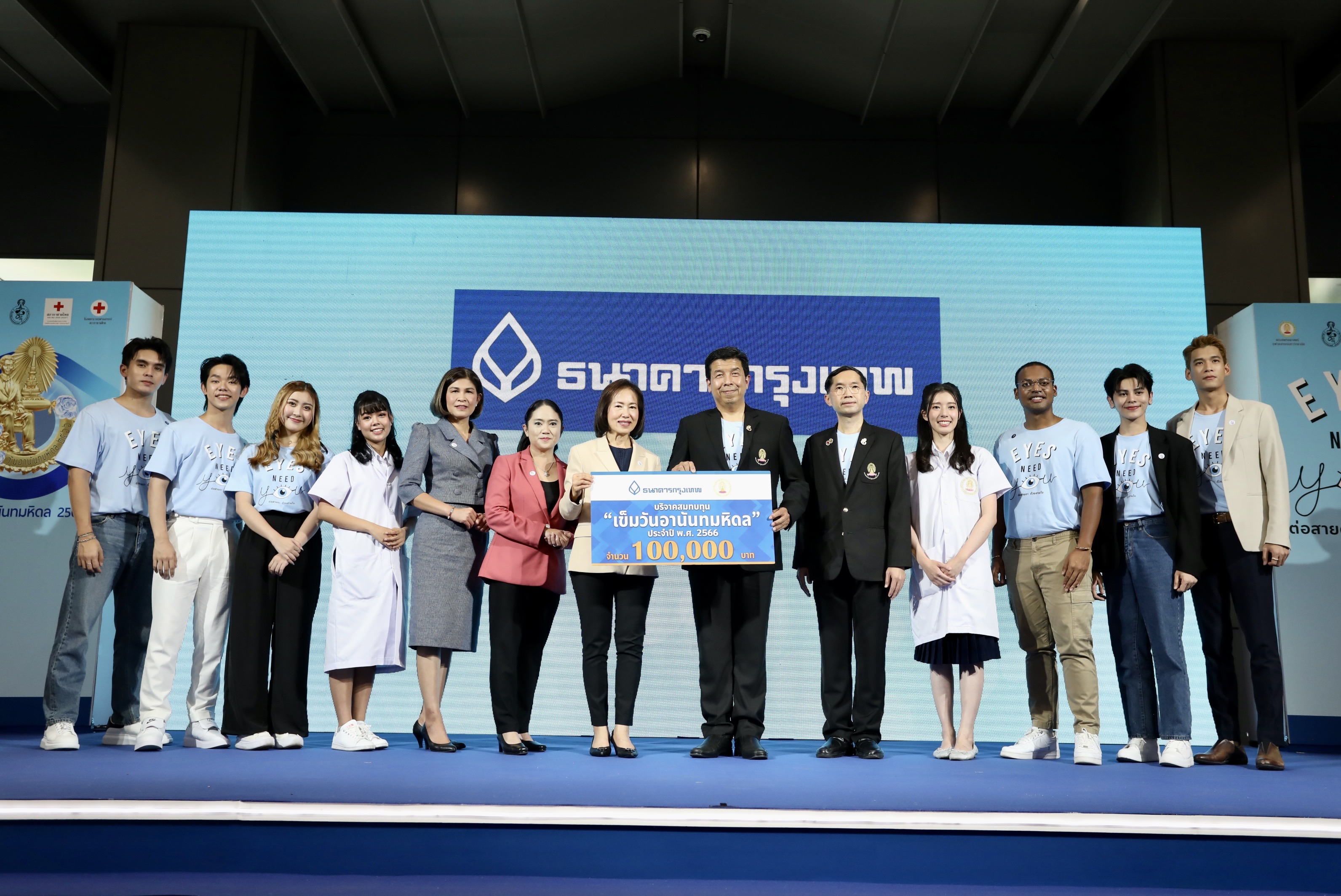 9 มิถุนายน 2566 : พจณี คงคาลัย ผู้ช่วยผู้จัดการใหญ่ (ที่ 7 จากซ้าย) นัทธมน มีประวัติ เจ้าหน้าที่บริหารระดับ Assistant Vice President ผู้จัดการภาคนครหลวง 1 (ที่ 6 จากซ้าย) และ สุนันฐินี แสนคำ เจ้าหน้าที่บริหารระดับ Assistant Vice President ผู้จัดการสาขาสุรวงศ์ (ที่ 5 จากซ้าย) ธนาคารกรุงเทพ จำกัด (มหาชน) ในฐานะ ‘เพื่อนคู่คิด’ มอบเงินจำนวน 100,000 บาท แก่คณะแพทยศาสตร์ จุฬาลงกรณ์มหาวิทยาลัย โอกาสธนาคารร่วมสมทบทุน “เข็มวันอานันทมหิดล” ประจำปี 2566 น้อมรำลึกในพระมหากรุณาธิคุณ พระบาทสมเด็จพระปรเมนทรมหาอานันทมหิดล พระอัฐมรามาธิบดินทร ผู้พระราชทานกำเนิด “แพทย์จุฬาฯ” เพื่อจัดทำเข็มที่ระลึกเนื่องในวันคล้ายวันสวรรคต 9 มิถุนายน ของทุกปี
