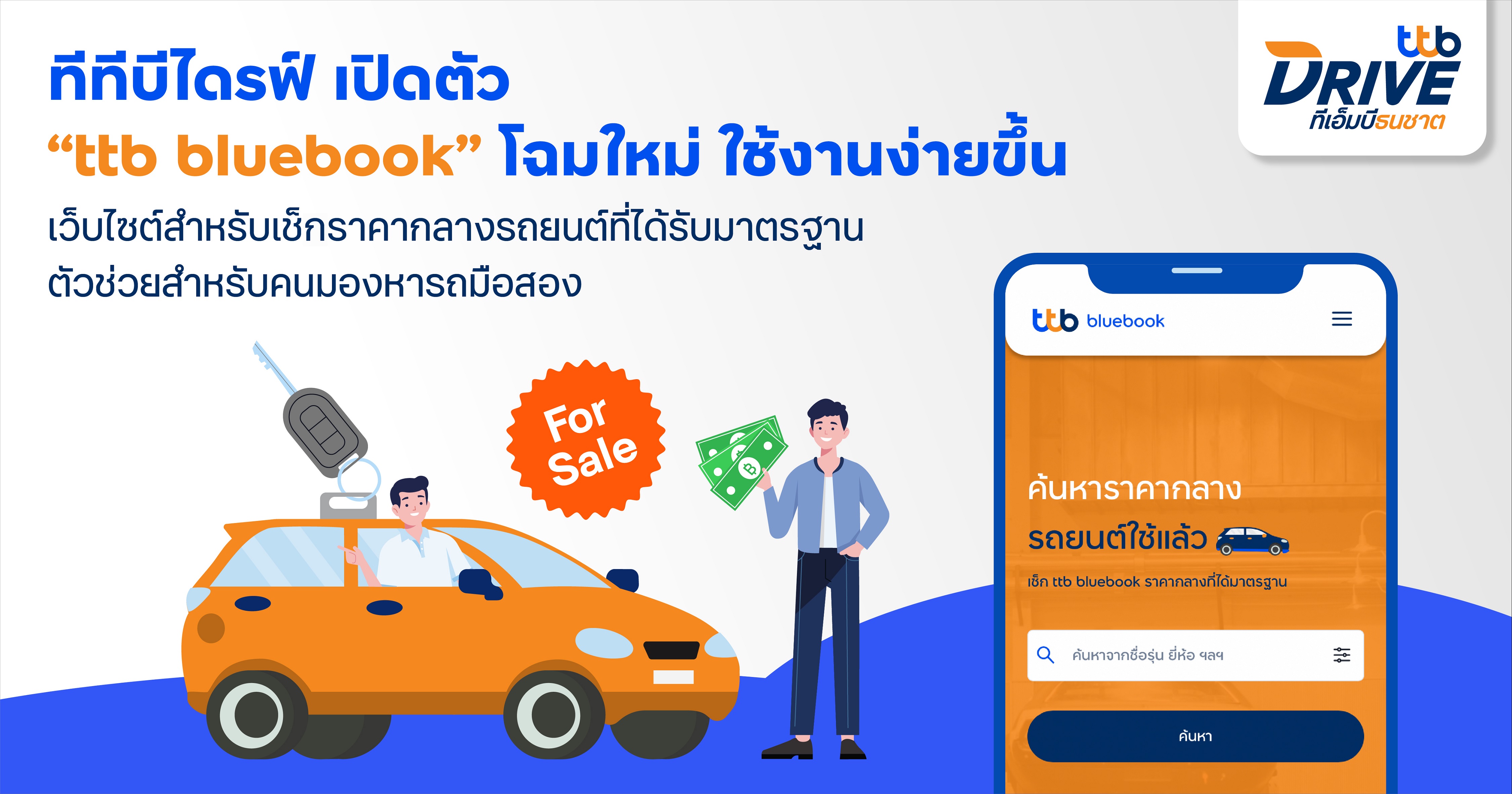 14 มิถุนายน 2566 : ทีทีบีไดรฟ์ โดย ทีเอ็มบีธนชาต เปิดตัว ttb bluebook โฉมใหม่ เว็บไซต์สำหรับเช็กราคากลาง หรือราคาประเมินของรถยนต์มือสองโดยทั่วไปในท้องตลาด ที่ได้มาตรฐาน น่าเชื่อถือ ตอบโจทย์ผู้ที่ชอบหาข้อมูลเปรียบเทียบเพื่อความคุ้มค่าในการซื้อรถ พร้อมกับปรับโฉมใหม่ด้วยฟังก์ชันการใช้งานที่สะดวกและง่ายกว่าเดิม