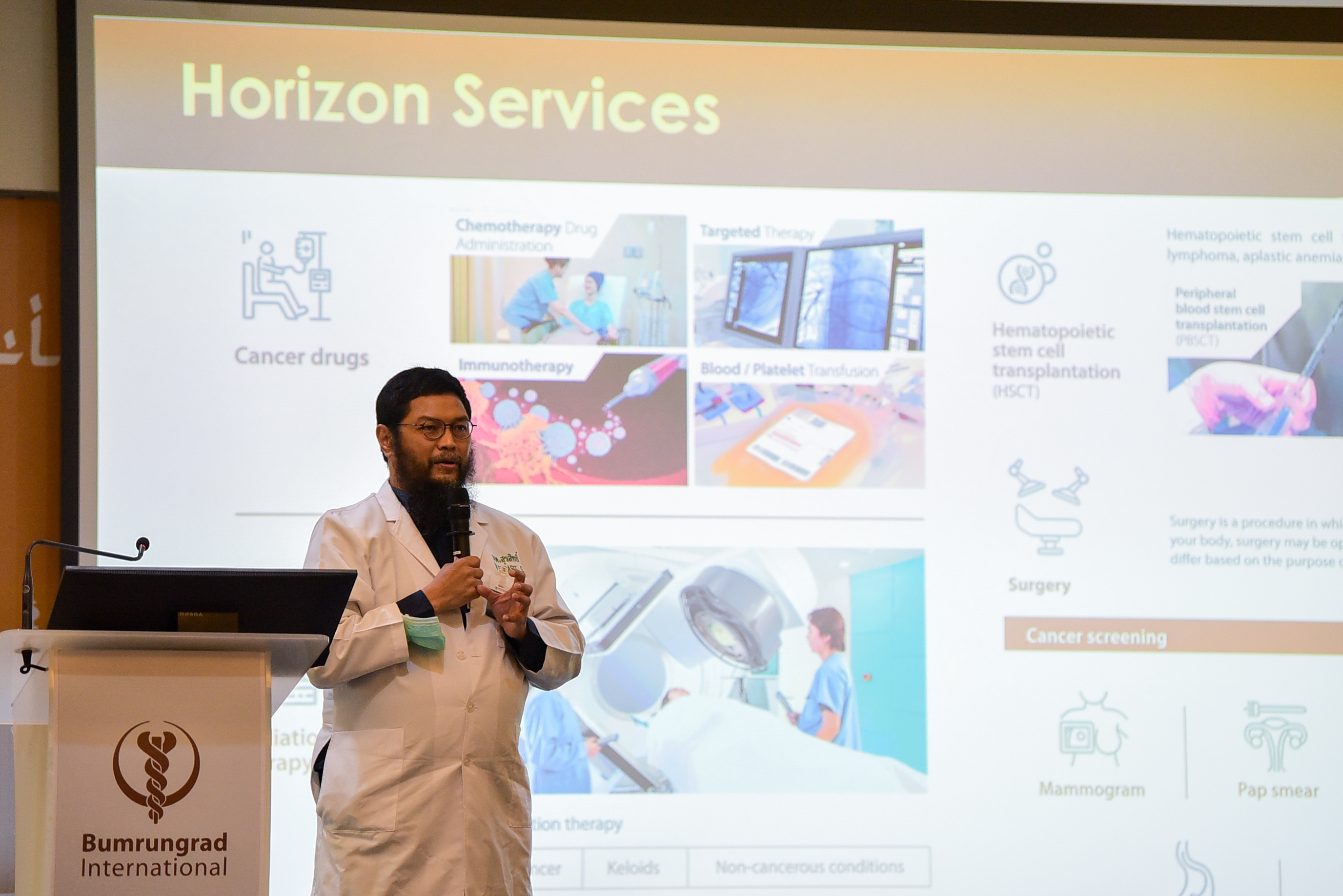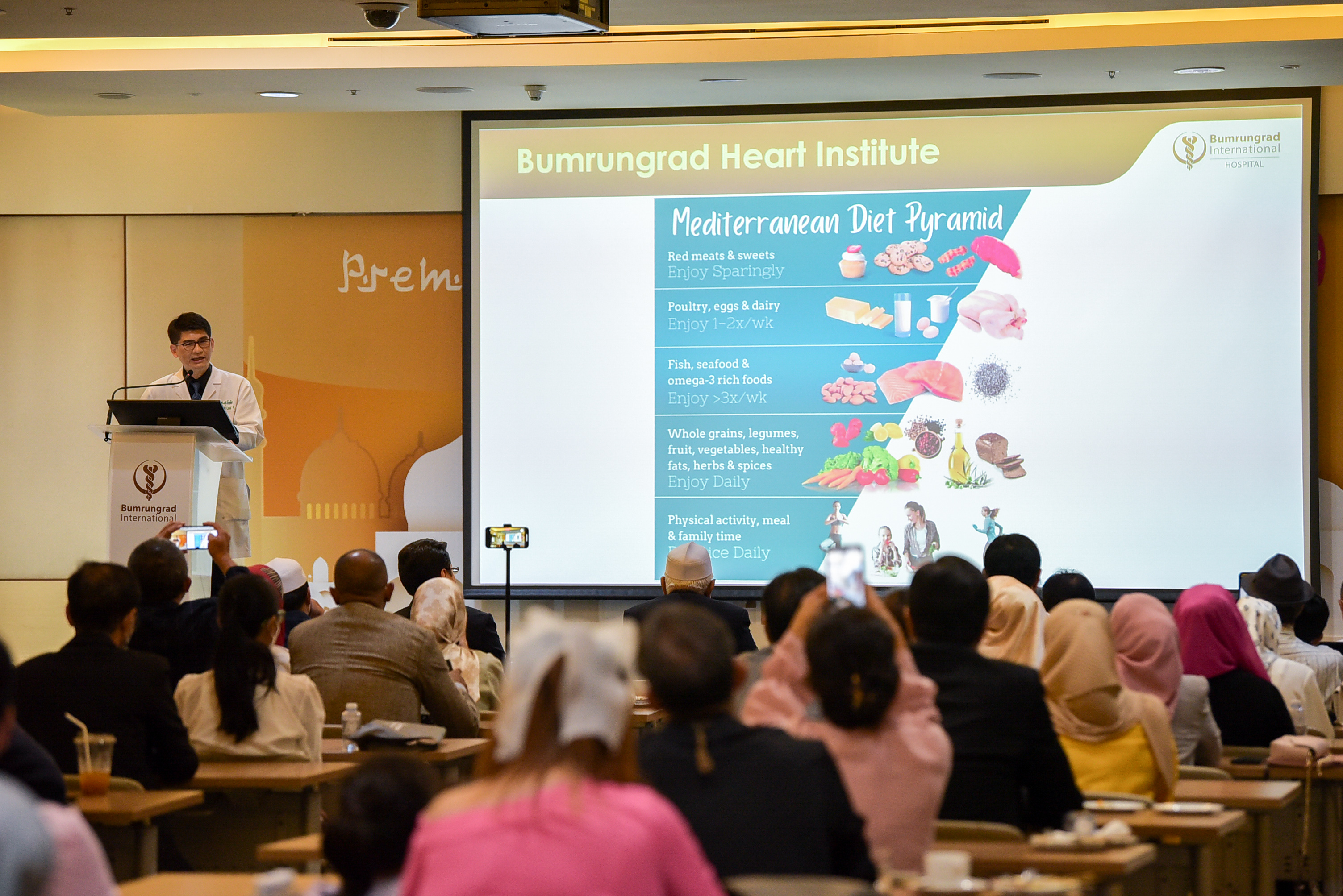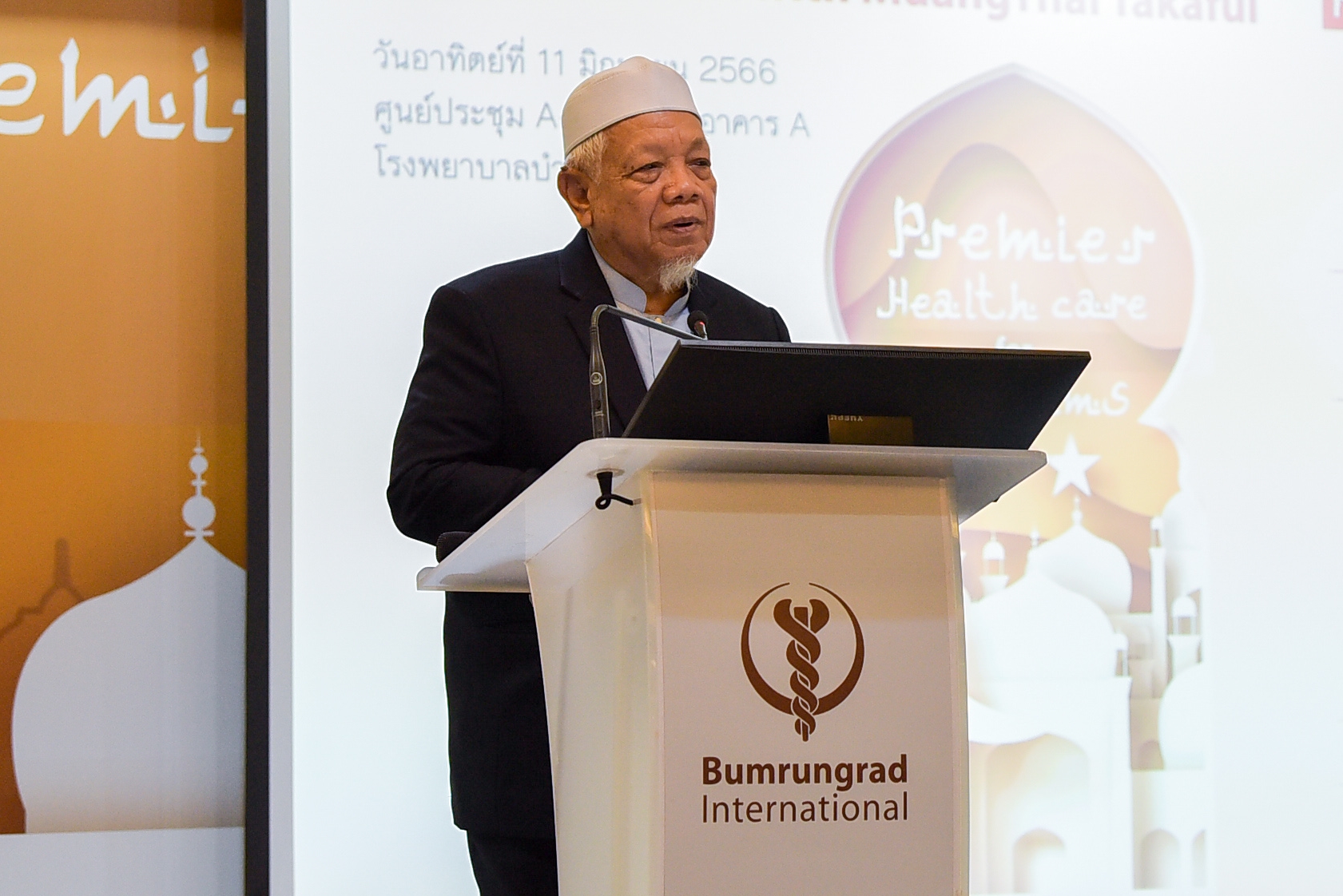 พร้อมการเสวนา “แนะนำนวัตกรรมการรักษาโรคหัวใจ มะเร็ง และการรักษาแบบองค์รวมมาตรฐานบำรุงราษฎร์” โดย นพ.สุรสิทธิ์ อิสสระชัย แพทย์ผู้ชำนาญการอายุรศาสตร์ โลหิตวิทยาและมะเร็งวิทยา รศ.นพ.สุวัจชัย พรรัตนรังสี แพทย์ผู้ชำนาญการอายุรศาสตร์โรคหัวใจ และ นพ.กษิดิษ ศรีสง่า แพทย์ผู้ชำนาญการศัลยศาสตร์ทั่วไป พร้อมด้วย รศ.ดร.วินัย ดะห์ลัน คณะกรรมการเมืองไทยชารีอะห์ ร่วมในงาน โดยงานจัดขึ้น ณ โรงพยาบาลบำรุงราษฎร์
