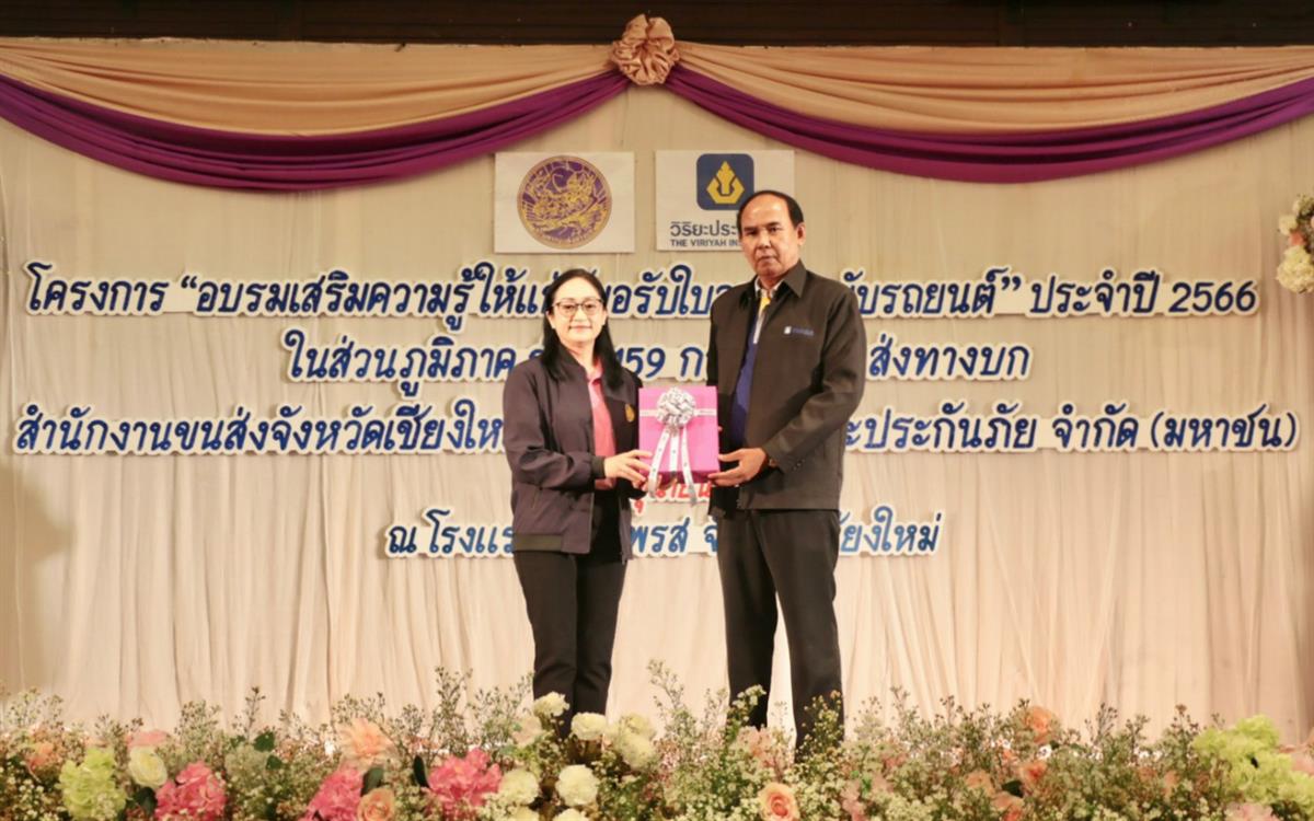 15 มิถุนายน 2566 : ปาริชาติ ภู่พงศ์ศักดิ์ เจ้าพนักงานขนส่งอาวุโส สำนักงานขนส่งจังหวัดเชียงใหม่ และ ประสิทธิ์ สุนะชูแสง ผู้ช่วยกรรมการผู้จัดการ บริษัท วิริยะประกันภัย จำกัด (มหาชน) ร่วมเปิดโครงการ “อบรมเสริมความรู้ให้แก่ผู้ขอรับใบอนุญาตขับขี่รถยนต์ส่วนภูมิภาค” รุ่นที่ 159 ซึ่งบริษัทฯ ร่วมกับ สำนักงานขนส่งจังหวัดเชียงใหม่ จัดขึ้นเพื่อส่งเสริมมาตรการป้องกันและลดอุบัติเหตุทางถนน ด้วยการเสริมสร้างความรู้ให้ผู้ขับขี่รถยนต์ตระหนักถึงการขับขี่ปลอดภัย การรักษากฎจราจรและมารยาทการใช้รถบนท้องถนน รวมถึงสิทธิประโยชน์จากการทำประกันภัย พร้อมอำนวยความสะดวกแก่ประชาชนในการขอรับใบอนุญาตขับรถยนต์ โดยการอบรมในครั้งนี้ มีผู้เข้าร่วมอบรมทั้งสิ้นจำนวน 109 คน ณ โรงแรม ดิเอ็มเพรส เชียงใหม่