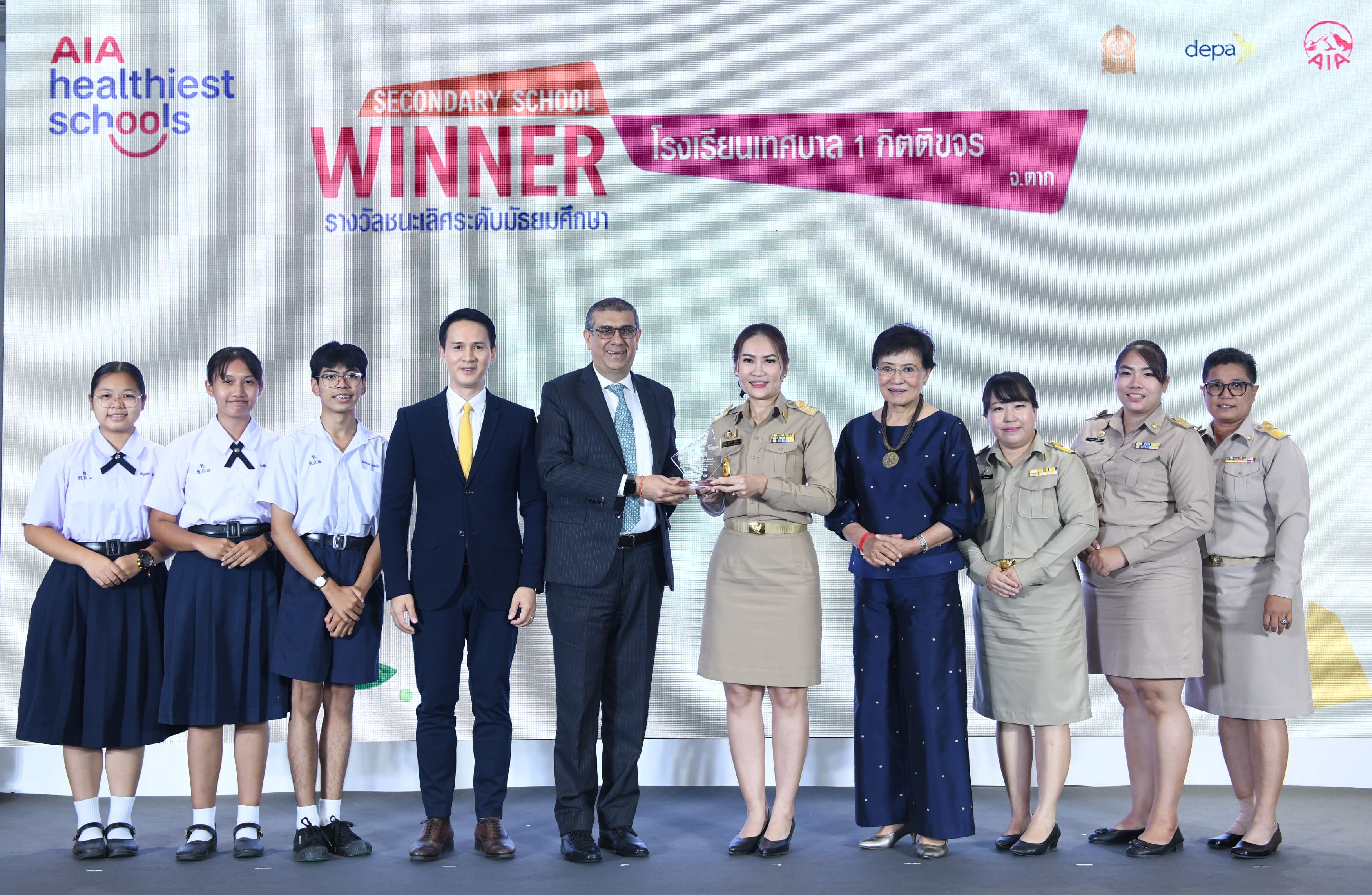 โรงเรียนเทศบาล 1 กิตติขจร จังหวัดตาก ชนะเลิศการแข่งขันโครงการสุดยอดโรงเรียนสุขภาพดี AIA Healthiest Schools ในระดับมัธยมศึกษา โดยนำสื่อการสอนจากโครงการฯ เพื่อพัฒนากิจกรรมสำหรับนักเรียน และจัดสำรวจความคิดเห็นของนักเรียน ครู ผู้ปกครอง เช่น โครงการ Good Food Good Mood Project เป็นโครงการที่มุ่งเน้นเรื่องการเลือกรับประทานอาหารที่มีประโยชน์ ตรวจสารปนเปื้อนในน้ำดื่ม ส่งเสริมการออกกำลังกาย จัดสถานที่พักผ่อนสำหรับนักเรียน นอกจากนี้ยังจัดกิจกรรม “คลินิกเพื่อนใจวัยรุ่น” เพื่อคอยรับฟัง ให้คำปรึกษา และช่วยเหลือนักเรียนที่ประสบปัญหาต่าง ๆ เพื่อให้นักเรียนมีสุขภาพและคุณภาพชีวิตที่ดีอย่างยั่งยืน