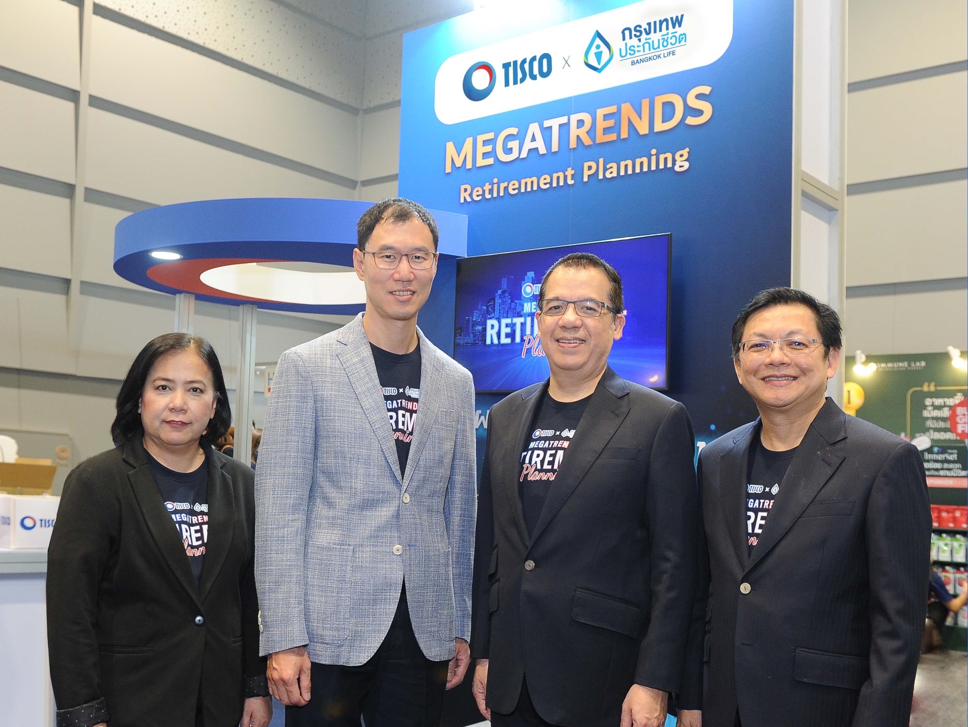 พร้อมด้วยคณะผู้บริหารจากสององค์กรพันธมิตร ร่วมเปิดบูทแนะนำการวางแผนเกษียณ ที่เท่าทันต่อการเปลี่ยนแปลงของโลก (Megatrends Retirement Planning) ครอบคลุมทั้งในมิติการเสริมสร้างความรู้ การลงทุนในธุรกิจแห่งอนาคต และปกป้องความเสี่ยงหลังเกษียณ ด้วยประกันบำนาญที่มีผลประโยชน์ในขณะดำรงชีวิต (Living Benefit) สูง ประกันสุขภาพแบบเหมาจ่าย และประกันโรคร้ายแรงที่มีทุนประกันสูง ให้คนไทยได้เตรียมสุขภาพการเงินที่พร้อมตอบโจทย์ไลฟ์สไตล์การใช้ชีวิต และการเกษียณอย่างแท้จริง
