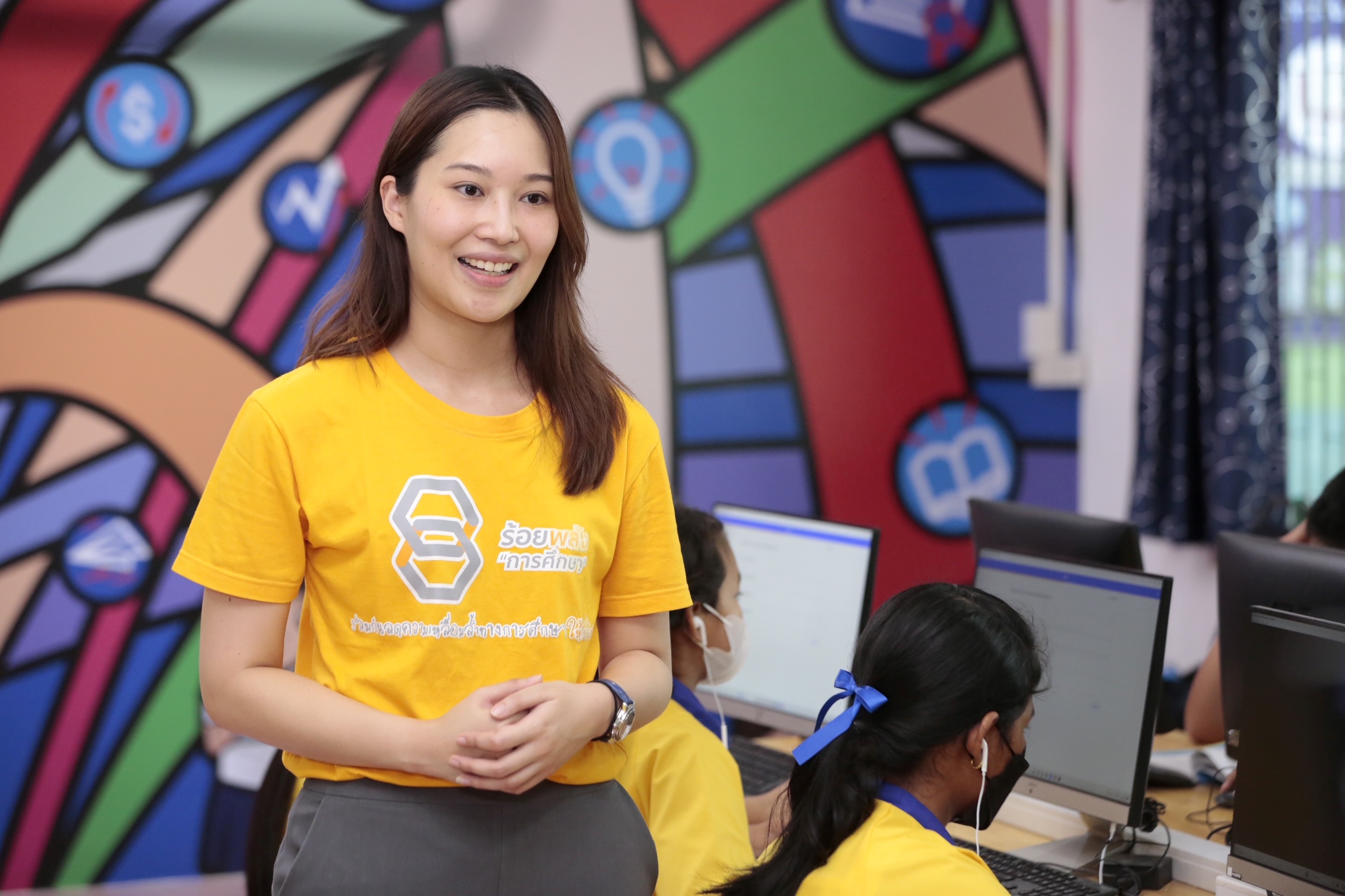 นางสาวกนกวรรณ โชว์ศรี ผู้อำนวยการโครงการร้อยพลังสร้างสังคมดี มูลนิธิเพื่อ “คนไทย” และโครงการร้อยพลังการศึกษา มูลนิธิยุวพัฒน์ กล่าวว่า ในโครงการ UOB My Digital Space เราไปเติมสองส่วนให้กับโรงเรียน ได้แก่ การเติมอุปกรณ์คอมพิวเตอร์ให้ครบถ้วน พร้อมสำหรับจัดการเรียนการสอน และการเติมหลักสูตรดิจิทัลวิชาวิทยาศาสตร์ คณิตศาสตร์ และภาษาอังกฤษ เพื่อให้คุณครูนำไปใช้จัดการเรียนการสอน ซึ่งหลักสูตรดังกล่าวเป็นระบบออนไลน์ที่นอกจากนักเรียนจะได้เรียนไปพร้อมกันกับเพื่อนในห้องเรียน เด็กๆ ยังสามารถกลับไปทบทวนบทเรียนเพิ่มเติมได้ด้วยตนเองที่บ้าน