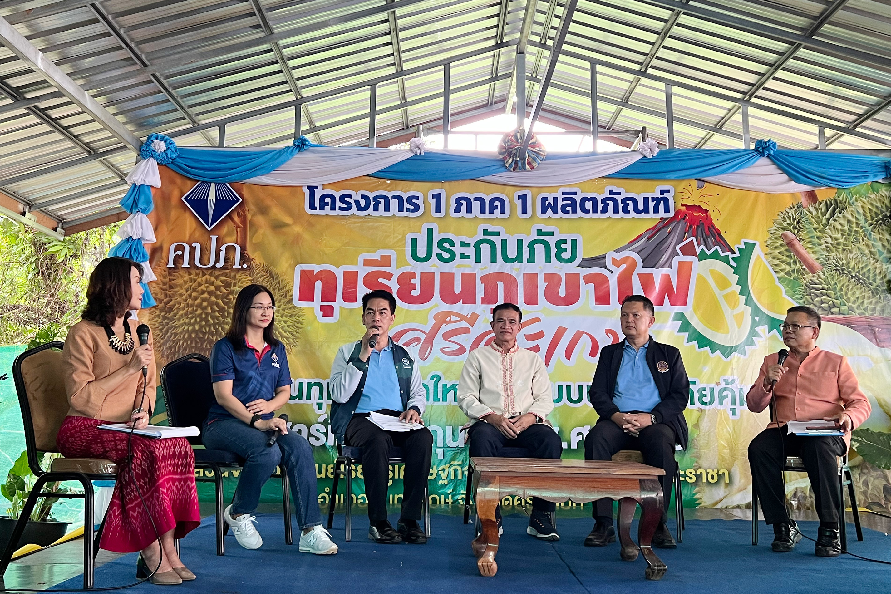 โดยมี อาคม เติมพิทยาไพสิฐ รัฐมนตรีว่าการกระทรวงการคลัง ให้เกียรติเป็นประธานในพิธีเปิดงานพร้อมด้วย ดร.สุทธิพล ทวีชัยการเลขาธิการคณะกรรมการกำกับและส่งเสริมการประกอบธุรกิจประกันภัย(คปภ.) และ สำรวย เกษกุล ผู้ว่าราชการจังหวัดศรีสะเกษ ร่วมให้การต้อนรับ เพื่อเป็นการประชาสัมพันธ์กรมธรรม์ประกันภัยทุเรียนภูเขาไฟศรีสะเกษและเพื่อส่งเสริมความรู้ความเข้าใจแก่เกษตรกรให้เข้าถึงระบบประกันภัยและสามารถใช้ในการบริหารความเสี่ยงได้อย่างเหมาะสม
