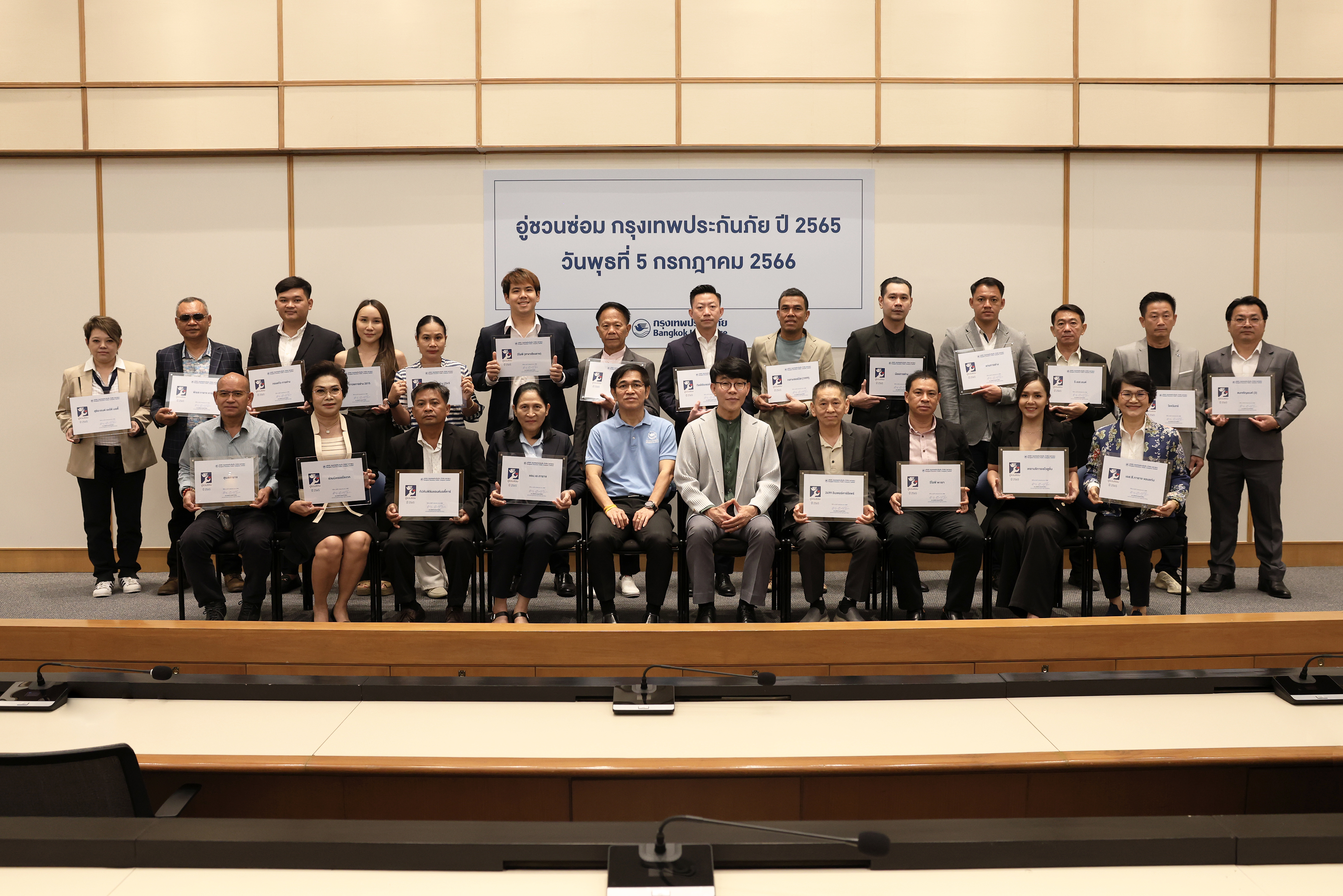 5 กรกฎาคม 2566 : บริษัท กรุงเทพประกันภัย จำกัด (มหาชน) จัดงานในโครงการอู่ชวนซ่อม กรุงเทพประกันภัย ปี 2565 เพื่อแสดงความยินดีแก่อู่ในโครงการฯ ซึ่งได้รับความพึงพอใจจากลูกค้าที่ใช้บริการ โดยมี ดร.อภิสิทธิ์ อนันตนาถรัตน ประธานคณะผู้บริหารและกรรมการผู้อำนวยการใหญ่ กล่าวเปิดงานและให้แนวคิดเรื่องการให้บริการแก่ลูกค้าด้วยความประทับใจ พร้อมมอบประกาศนียบัตรให้แก่อู่ชวนซ่อม จำนวน 22 อู่ และมี ยิ่งยศ แสงชัย ผู้อำนวยการ ฝ่ายสินไหมทดแทนยานยนต์ และคณะผู้บริหาร ร่วมให้การต้อนรับผู้บริหารอู่ ณ ห้องประชุม 1105 ชั้น 11 อาคารกรุงเทพประกันภัย ถนนสาทรใต้ เมื่อวันที่ 5 กรกฎาคม 2566