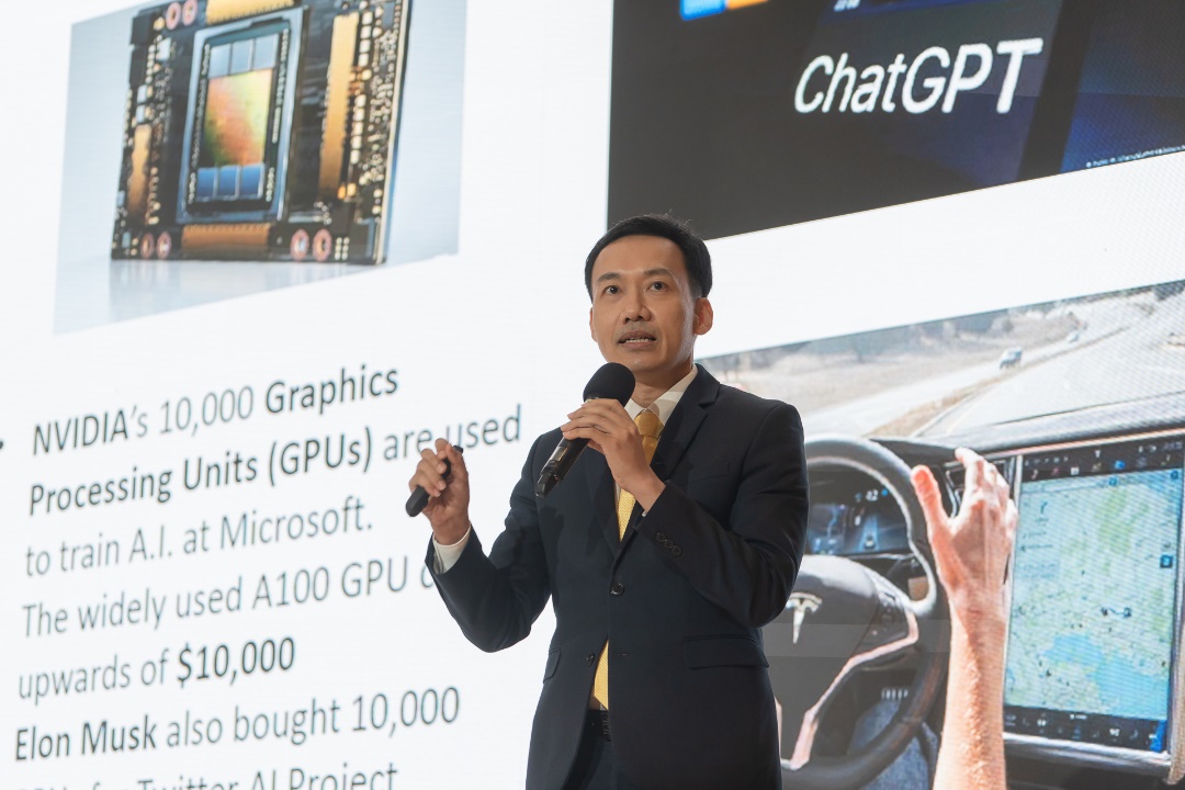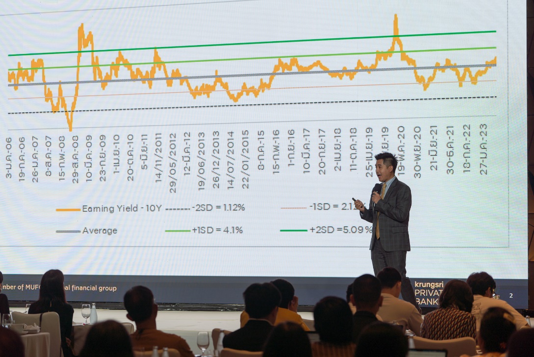 ด้านนายกรภัทร วรเชษฐ์ ผู้อำนวยการฝ่ายวิจัยและบริการการลงทุน บริษัทหลักทรัพย์ กรุงศรี พัฒนสิน จำกัด (มหาชน) ได้ให้ความเห็นในส่วนของหุ้นไทยกับบริบทการเติบโตของ AI ว่า สถานการณ์ตลาดในประเทศไทยยังอยู่ในช่วง Underperform หากเทียบกับตลาดอื่นๆ อย่างไรก็ตาม เมื่อตลาดหุ้นไทยปรับตัว ลง ถือเป็นโอกาสในการเพิ่มน้ำหนักการลงทุนหุ้นได้ สิ่งสำคัญ คือ การลงทุนในสินทรัพย์ปลอดภัย เลือกหุ้นที่มั่นคง และมีโอกาสที่ธุรกิจยังคงอยู่ต่อไปในอีก 3-5 ปี อาทิ กลุ่มปิโตรเคมี กลุ่มค้าปลีกที่เติบโตไปกับเศรษฐกิจฐานราก โรงไฟฟ้า นิคมอุตสาหกรรมและชิ้นส่วนอิเล็กทรอนิกส์ กลุ่มธนาคาร และกลุ่มโรงพยาบาล