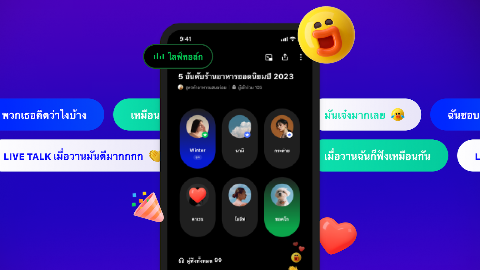 · ห้อง Live talk แต่ละห้อง สามารถรองรับผู้เข้าร่วมฟังได้ถึง 10,000 คน และผู้พูดได้ถึง 100 คน