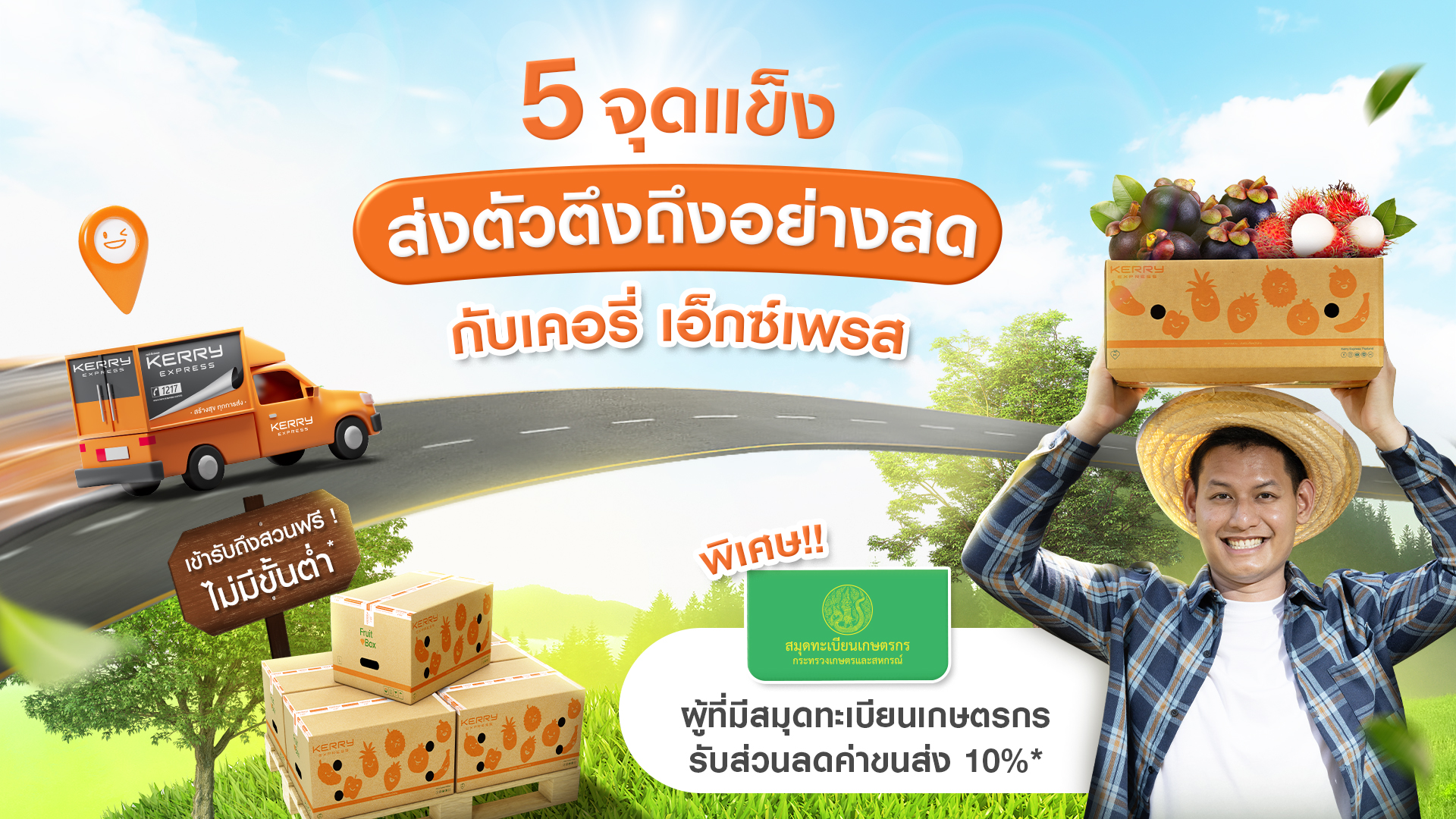 อีกทั้งยังประหยัดต้นทุนการเดินทางได้อีกด้วยบริการหน้าร้านอย่างมืออาชีพ มีอุปกรณ์การแพ็คแบบครบครัน และมีพนักงานที่คอยอำนวยความสะดวก ให้คำแนะนำเกี่ยวกับการแพ็คได้เป็นอย่างดี ให้ลูกค้ามั่นใจได้ว่าผลไม้จะถึงปลายทางอย่างปลอดภัยรับประกันผลไม้ ในกรณีที่จัดส่งผลไม้ด้วยกล่องผลไม้เคอรี่ฯ และเกิดความเสียหาย สามารถเคลมได้สูงสุดถึง 2,500 บาท* ให้ส่งพัสดุอย่างมั่นใจ ไร้กังวล สนับสนุนเกษตรกรไทย ด้วยการร่วมกับ กรมส่งเสริมการเกษตร ออกแคมเปญมอบส่วนลดค่าส่งผลไม้ 10% เพียงแค่แสดงสมุดทะเบียนเกษตรเล่มเขียว ตั้งแต่วันนี้ถึง 31 ธันวาคมนี้[1]