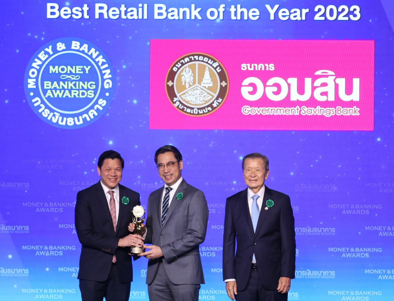 นอกจากนี้ ธนาคารยังได้รับรางวัลเกียรติยศอีก 3 รางวัล คือ รางวัลธนาคารเพื่อลูกค้ารายย่อยแห่งปี 2566 Best Retail Bank of the Year 2023 ซึ่งเป็นการครองตำแหน่งติดต่อกันเป็นปีที่ 8 รางวัลธนาคารที่มีบริการยอดเยี่ยมด้านเงินฝาก 2566 Best Service Provider – Deposit 2023 และรางวัลบูธสวยงามยอดเยี่ยม (Excellent Design Awards) ประเภทพื้นที่ขนาด 850 – 1,000 ตร.ม. โดยมี นางสาวนพวรรณ รัตนเวคิน รองผู้อำนวยการธนาคารออมสิน กลุ่มลูกค้าบุคคล และนางสาววชิรา การสุทธิ์ ผู้ช่วยผู้อำนวยการธนาคารออมสิน สายงานความยั่งยืน ร่วมรับรางวัล และมีนายสันติ วิริยะรังสฤษฎ์ ประธานบรรณาธิการ วารสารการเงินธนาคาร คณะผู้บริหารและพนักงานธนาคารออมสิน ร่วมแสดงความยินดี ณ โรงแรมไฮแอท รีเจนซี่ กรุงเทพฯ เมื่อวันที่ 14 กรกฎาคม 2566