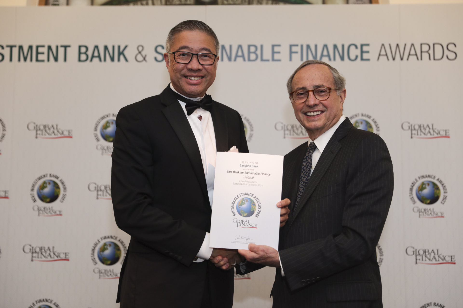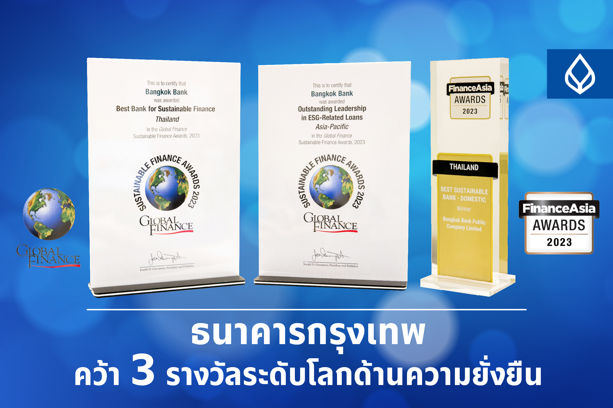 17 กรกฎาคม 2566 : นายประเสริฐ ดีจงกิจ ผู้ช่วยผู้จัดการใหญ่ ผู้จัดการฝ่ายทุนธนกิจ ธนาคารกรุงเทพ จำกัด (มหาชน) เปิดเผยว่า ธนาคารกรุงเทพได้รับรางวัลด้านการธนาคารเพื่อความยั่งยืน 3 รางวัล ประกอบด้วย รางวัล Best bank for sustainable finance in Thailand และ Outstanding Leadership in ESG-Related Loans for Asia-Pacific จาก Global Finance’s Sustainable Awards 2023 จัดโดย Global Finance นิตยสารการเงินการธนาคารชั้นนำของประเทศอังกฤษ
