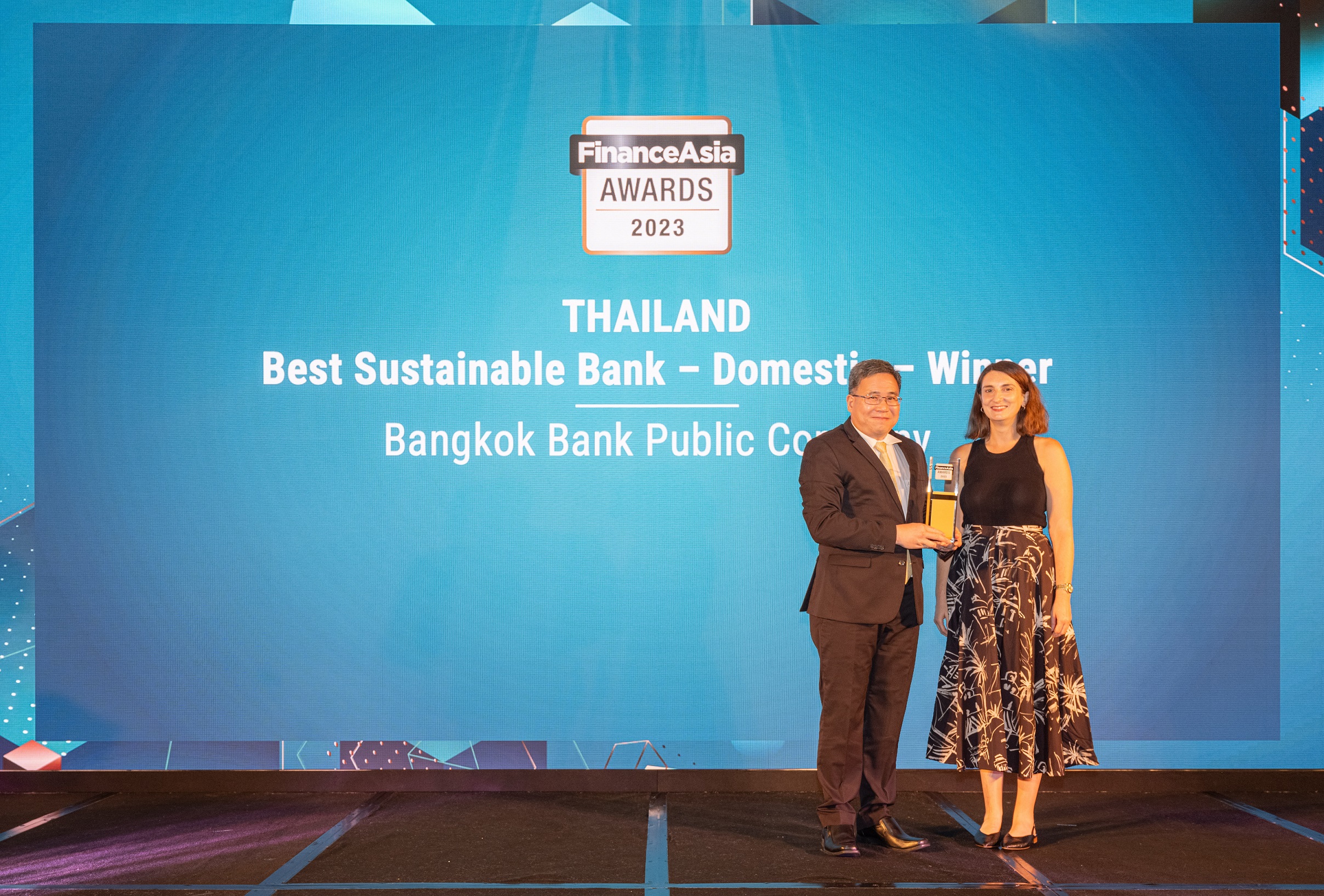 นอกจากนี้ ธนาคารยังได้รับรางวัล Best Sustainable Bank in Thailand จาก FinanceAsia Awards 2023 จัดโดย FinanceAsia นิตยสารชั้นนำด้านการเงินและการลงทุนในภูมิภาคเอเชียแปซิฟิก ซึ่งสะท้อนถึงความสำเร็จของธนาคาร ในฐานะ ‘สถาบันการเงินชั้นนำระดับภูมิภาค’ ที่มีความเชี่ยวชาญและประสบการณ์ด้านธุรกิจการเงิน รวมถึงมีความความมุ่งมั่นในการดำเนินงานตามแนวทางการพัฒนาที่ยั่งยืน