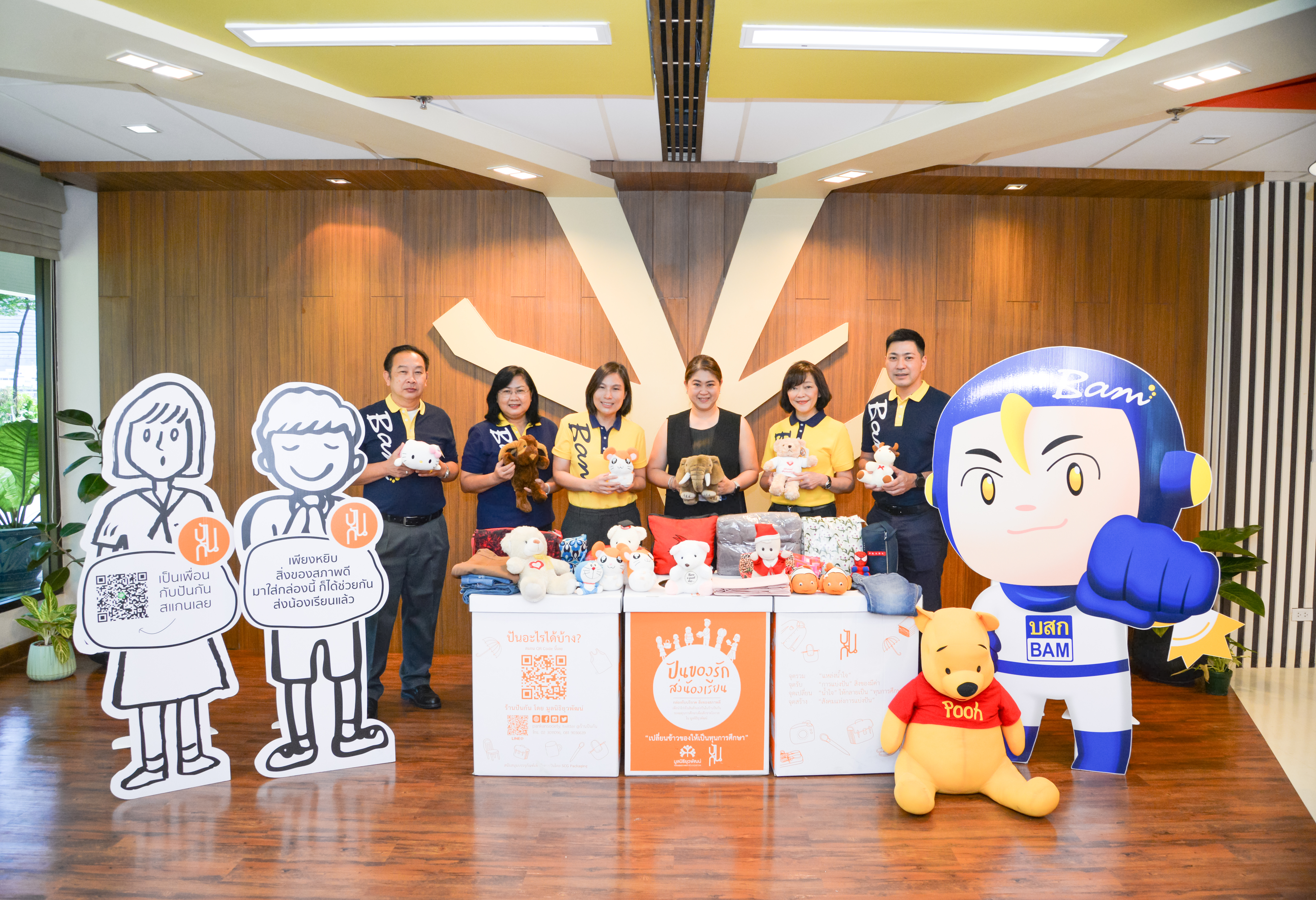 17 กรกฎาคม 2566 : ผลินสุ เจริญยิ่ง (ที่ 3 จากซ้าย) ผู้ช่วยประธานเจ้าหน้าที่บริหาร สายทรัพยากรบุคคล และ วิภาศิริ แสงวัชระกุล (ที่ 5 จากซ้าย) ผู้ช่วยประธานเจ้าหน้าที่บริหารดูแลงานส่งเสริมการปฏิบัติงานด้านธรรมาภิบาลและความยั่งยืน บริษัทบริหารสินทรัพย์ กรุงเทพพาณิชย์ จำกัด (มหาชน) หรือ BAM เป็นตัวแทนบริษัทส่งมอบสิ่งของเครื่องใช้สภาพดี แก่ร้านปันกัน โดยมูลนิธิยุวพัฒน์ จากโครงการ “BAM x ปันกัน ปันของรัก ส่งน้องเรียน” โดยมี นางสาวฐาปนีย์ สินาดโยธารักษ์ (ที่ 4 จากซ้าย) กรรมการผู้จัดการร้านปันกัน เป็นตัวแทนรับมอบ