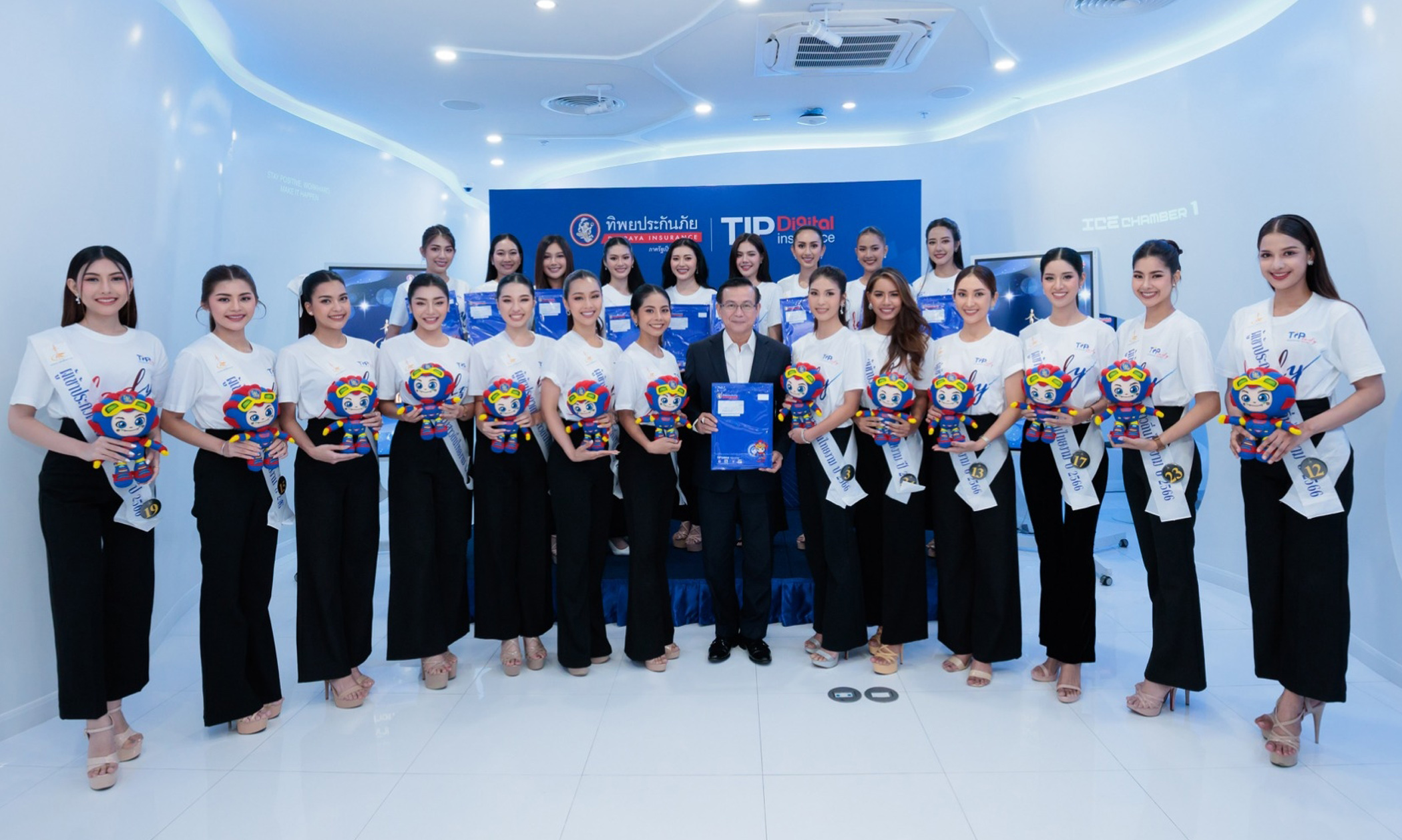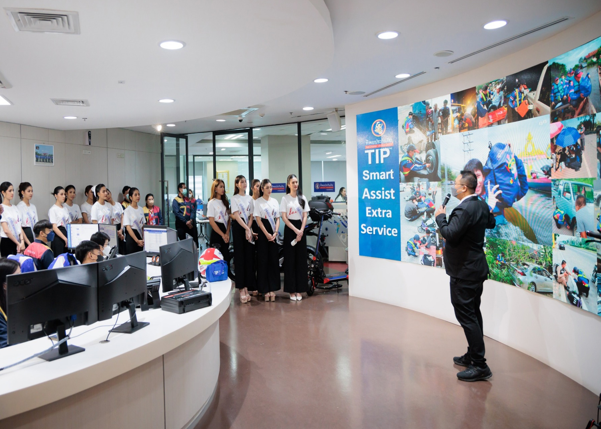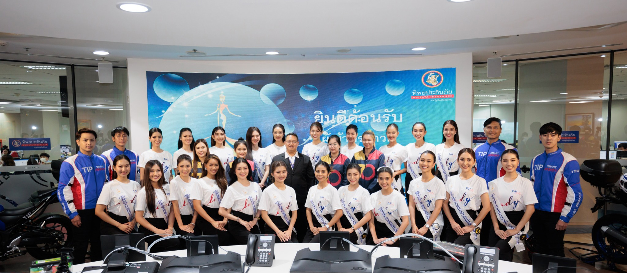 21 กรกฎาคม 2566 : ดร.สมพร สืบถวิลกุล ประธานเจ้าหน้าที่บริหาร บมจ. ทิพย กรุ๊ป โฮลดิ้งส์ และกรรมการผู้จัดการใหญ่ บมจ.ทิพยประกันภัย และคณะผู้บริหาร ให้การต้อนรับผู้เข้าประกวดนางสาวถิ่นไทยงาม ที่เข้าเยี่ยมชมบริษัทฯ อาทิ ห้อง Inspiration Chamber (TIP IC) Innovative Co-Working Space ที่ออกแบบและติดตั้งอุปกรณ์สุดล้ำ ด้วยการใช้งานแบบ 360 องศา , CSC Room