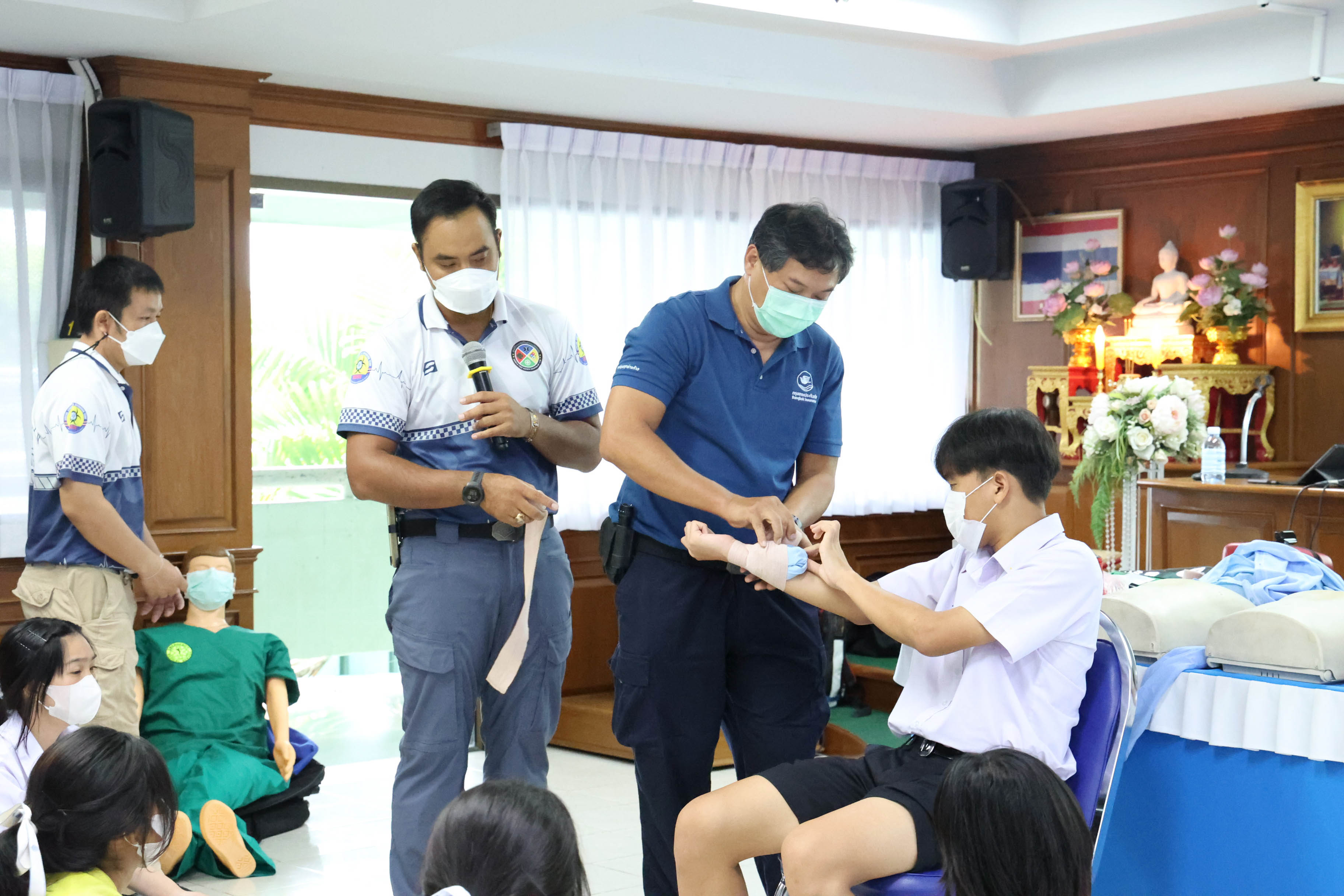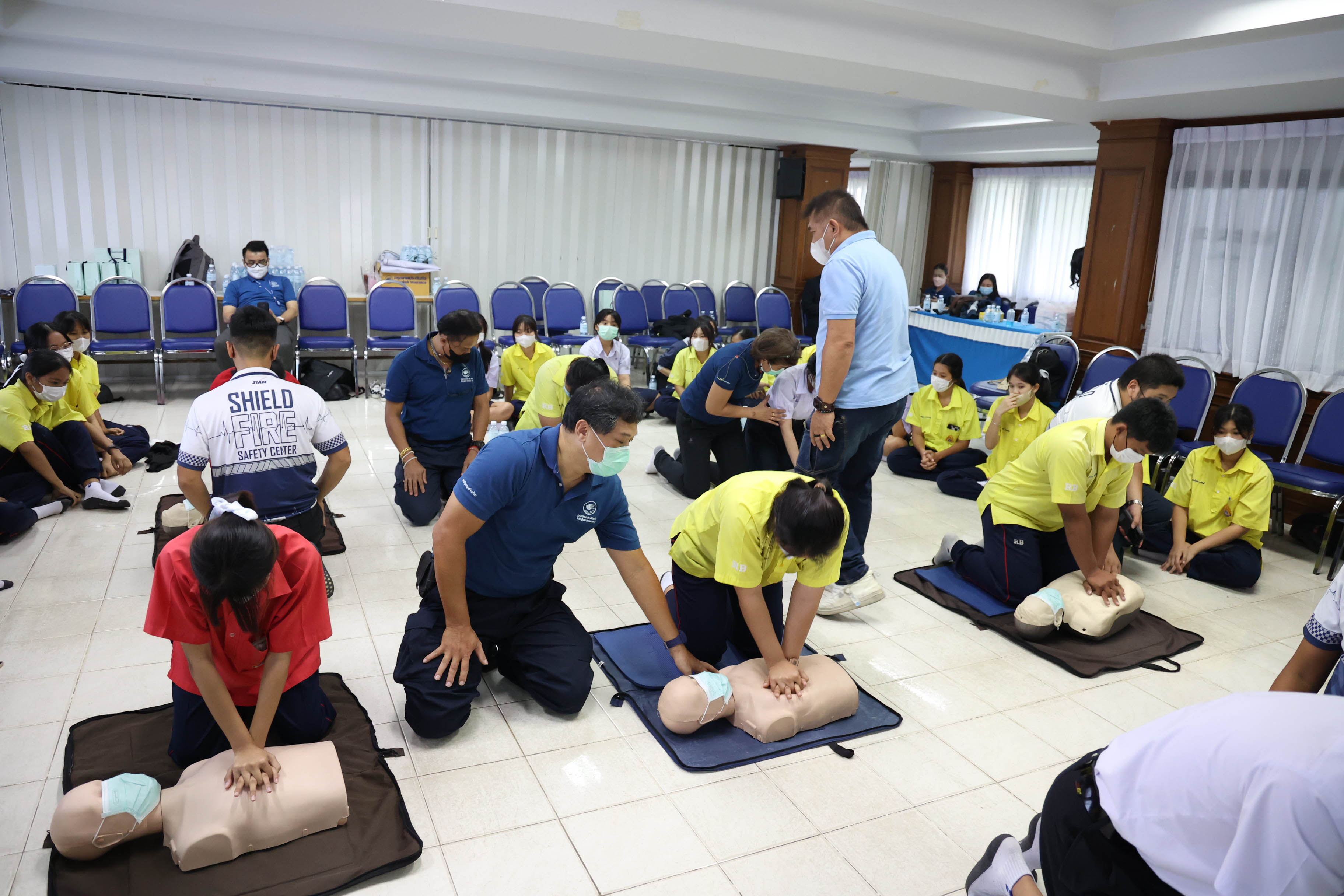 รวมถึงวิทยากรจากบริษัท ชิลด์ ไฟร์ เซฟตี้ เซ็นเตอร์ จำกัด ร่วมอบรมให้ความรู้ด้านการปฐมพยาบาลเบื้องต้นและสาธิตการปั๊มหัวใจ (CPR) ให้แก่นักเรียนระดับชั้นมัธยมศึกษาปีที่ 4 - 5 ในสโมสรอินเทอร์แรคท์ จำนวน 30 คน เพื่อให้นักเรียนมีความรู้ขั้นพื้นฐานในการช่วยเหลือผู้ป่วยหรือผู้บาดเจ็บได้อย่างถูกต้องและทันท่วงทีในกรณีเกิดเหตุฉุกเฉิน
