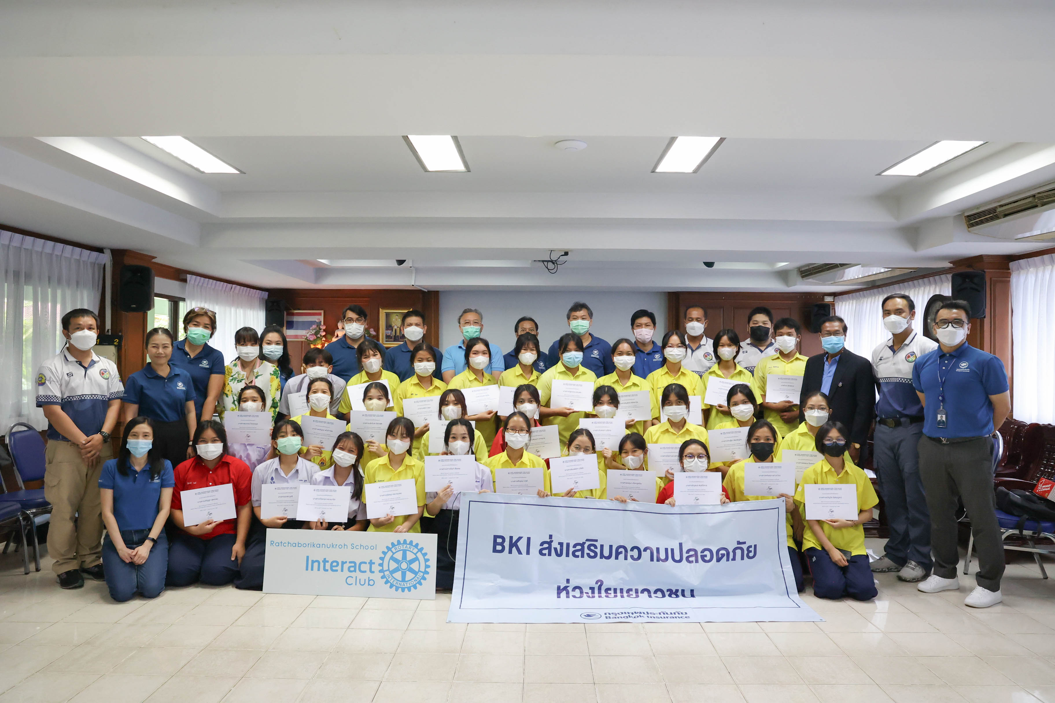 25 กรกฎาคม 2566 : บริษัท กรุงเทพประกันภัย จำกัด (มหาชน) จัดกิจกรรมส่งเสริมความปลอดภัย ห่วงใยเยาวชน ให้แก่นักเรียนโรงเรียนราชโบริกานุเคราะห์ โดยมี ยิ่งยศ แสงชัย ผู้อำนวยการฝ่ายสินไหมทดแทนยานยนต์ ในฐานะหัวหน้าคณะทำงานคณะกรรมการพัฒนาองค์กรอย่างยั่งยืน นำพนักงานทีมอาสาบรรเทาภัย (Emergency Response Team: ERT) และพนักงานสาขาราชบุรี
