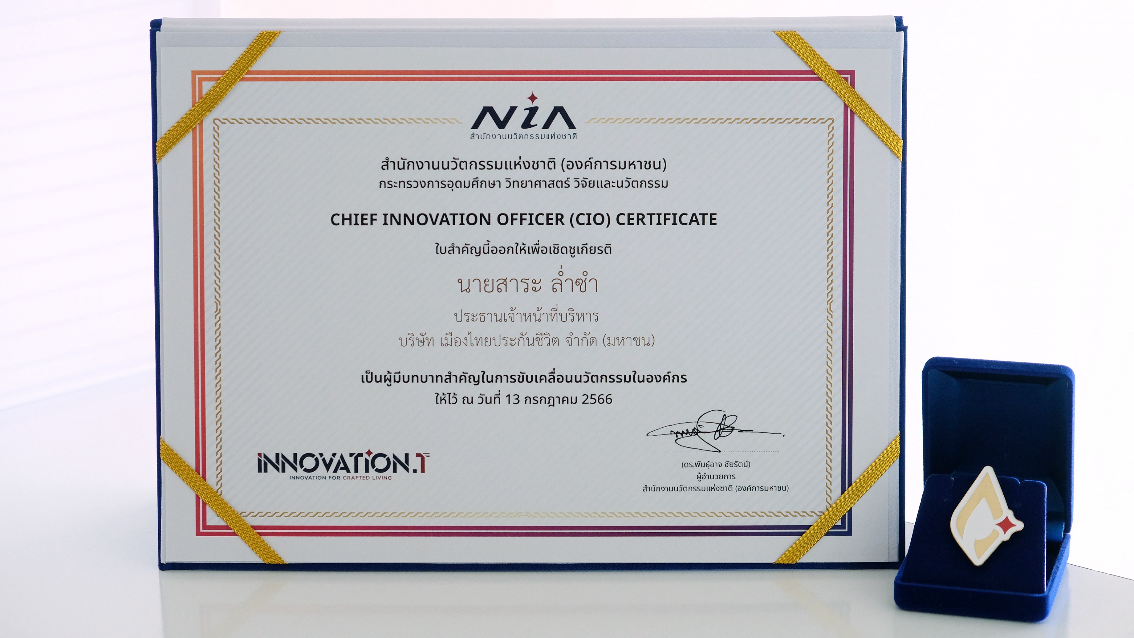 โดยในงาน นางสาวนาเดีย สุทธิกุลพานิช รองกรรมการผู้จัดการ ดูแลสายงาน Fuchsia Innovation Centre บริษัท เมืองไทยประกันชีวิต จำกัด (มหาชน) เป็นผู้แทนขึ้นรับมอบเข็มที่ระลึกและประกาศนียบัตรเชิดชูเกียรติดังกล่าวจาก ดร.พันธุ์อาจ ชัยรัตน์ ผู้อำนวยการ สำนักงานนวัตกรรมแห่งชาติ (องค์การมหาชน) งานจัดขึ้น ณ ห้องบอลรูม โรงแรมพาร์ค ไฮแอท กรุงเทพฯ