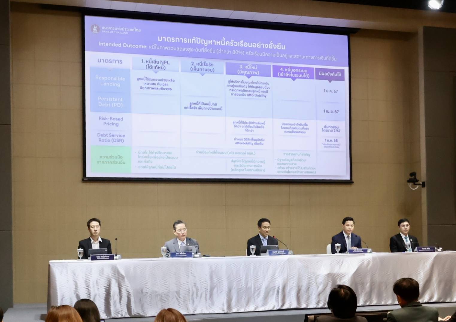 โดยถือเป็นภารกิจสำคัญที่ต้องเร่งดำเนินการและพร้อมจะร่วมขับเคลื่อนตามมาตรการนี้ให้เป็นไปอย่างมีประสิทธิภาพตามที่ธนาคารแห่งประเทศไทยได้วางเป้าหมายไว้ เชื่อว่ามาตรการนี้จะส่งผลให้หนี้ครัวเรือนในอนาคตมีคุณภาพมากขึ้น โดยมี นายรณดล นุ่มนนท์ รองผู้ว่าการธนาคารแห่งประเทศไทย นายผยง ศรีวณิช ประธานสมาคมธนาคารไทย นายฉัตรชัย ศิริไล ผู้จัดการธนาคารเพื่อการเกษตรและสหกรณ์การเกษตร และ นายอธิป ศิลป์พจีการ รองประธานชมรมสินเชื่อส่วนบุคคล ร่วมแถลงข่าว ณ ธนาคารแห่งประเทศไทย