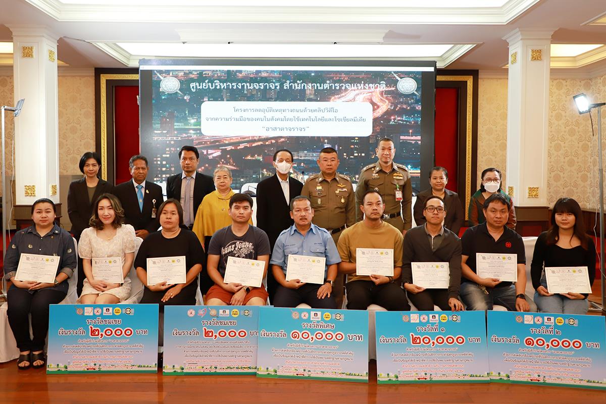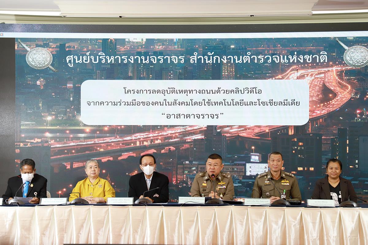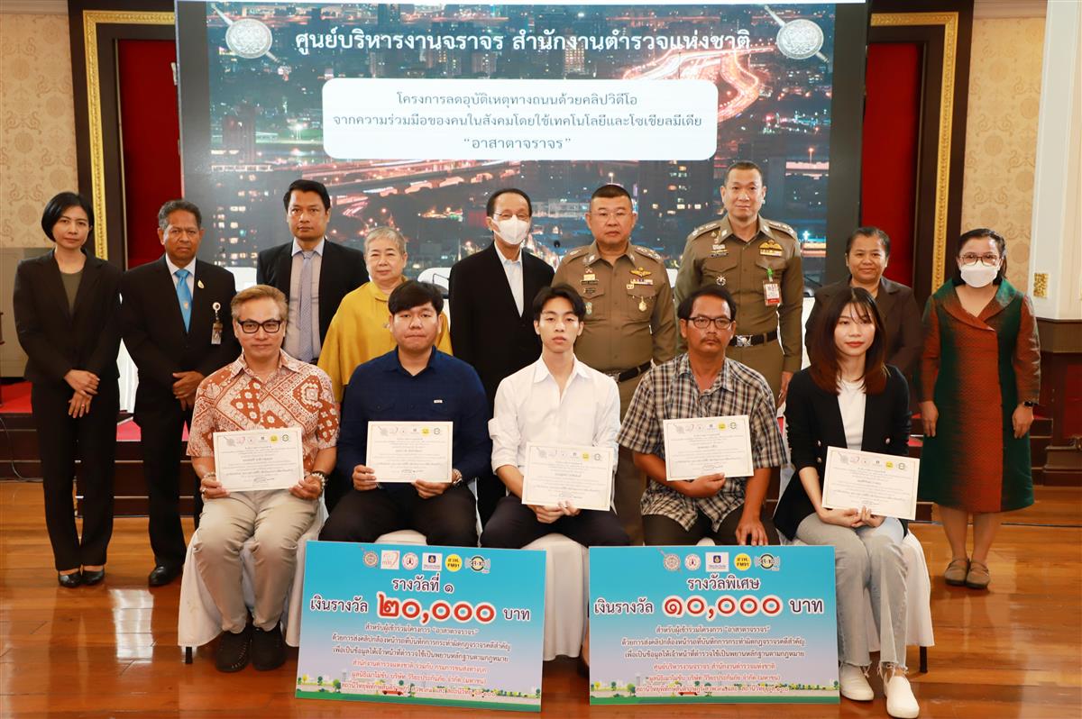 27 กรกฎาคม 2566 : พล.ต.อ.ดำรงศักดิ์ กิตติประภัสร์ ผู้บัญชาการตำรวจแห่งชาติ พร้อมด้วย กานดา วัฒนายิ่งสมสุข ที่ปรึกษาฝ่ายสื่อสารองค์กร ผู้แทนจาก บริษัท วิริยะประกันภัย จำกัด (มหาชน) นพ.แท้จริง ศิริพานิช เลขาธิการมูลนิธิเมาไม่ขับและภาคีเครือข่าย กองทุนเพื่อความปลอดภัยทางถนน สวพ.91 และจส.100 ร่วมแถลงผลการมอบรางวัลและเกียรติบัตร โครงการ “อาสาตาจราจร” ประจำเดือน มิถุนายน 2566 ให้กับเจ้าของคลิปที่ได้รับการคัดเลือก รวมจำนวนทั้งสิ้น 20 รางวัล และรางวัลพิเศษอีก 1 รางวัล รวมเป็นเงินรางวัลทั้งสิ้น 110,000 บาท ณ ห้องสารสิน สำนักงานตำรวจแห่งชาติ