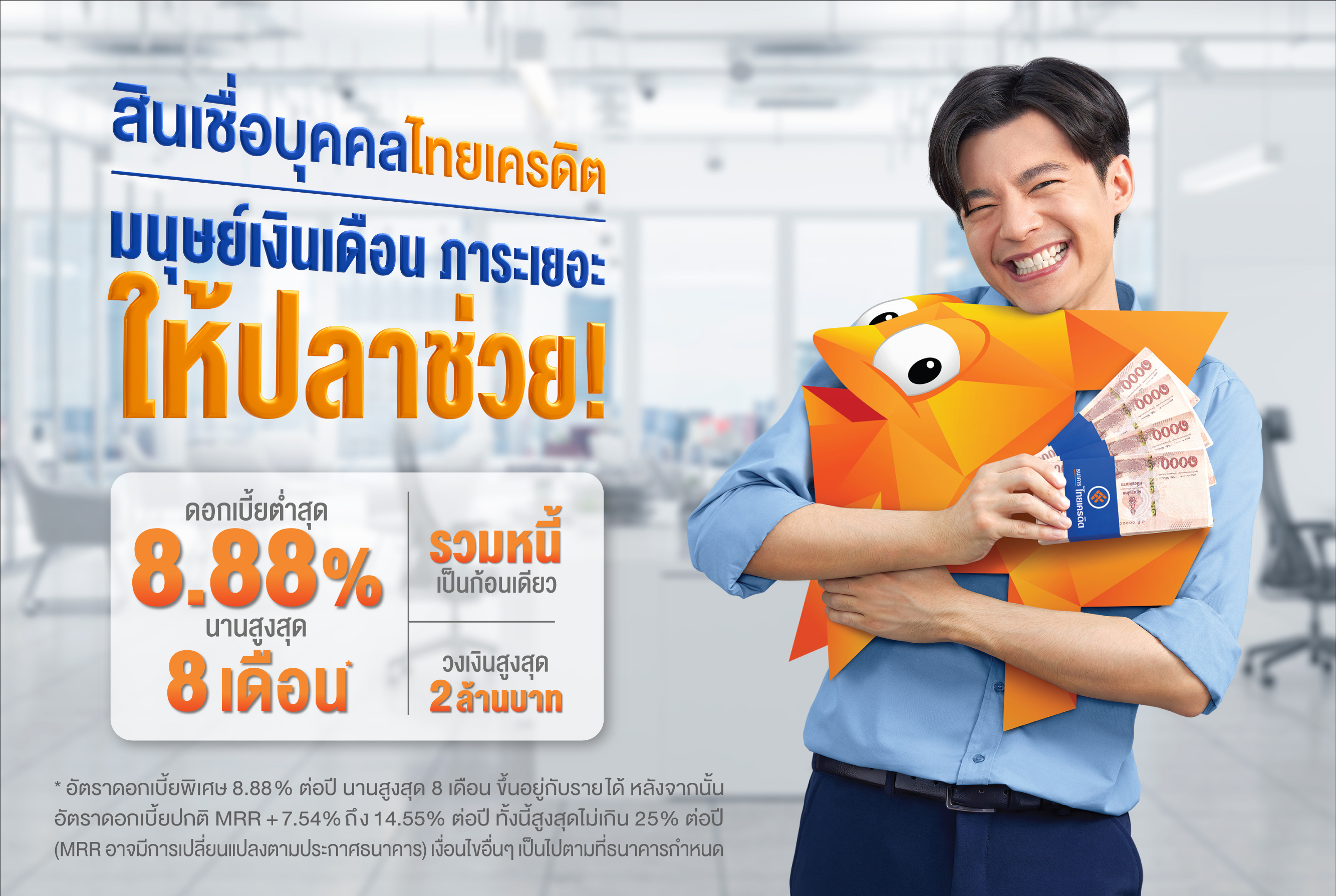 สินเชื่อบุคคลไทยเครดิตเป็นวงเงินพร้อมใช้ ช่วยแก้ปัญหาทุกเหตุจำเป็นสำหรับมนุษย์เงินเดือนหรือพนักงานที่มีรายได้ประจำ ไม่ว่าจะเป็นค่าเล่าเรียนบุตร ค่ารักษาพยาบาล ค่าปรับปรุงที่พักอาศัย ฯลฯ อนุมัติไวภายใน 1 วันทำการ หลังยื่นเอกสารครบ เพื่อให้ลูกค้าได้รับเงินทันต่อความต้องการ สอบถามเพิ่มเติม Call Center โทร. 02 697 5454