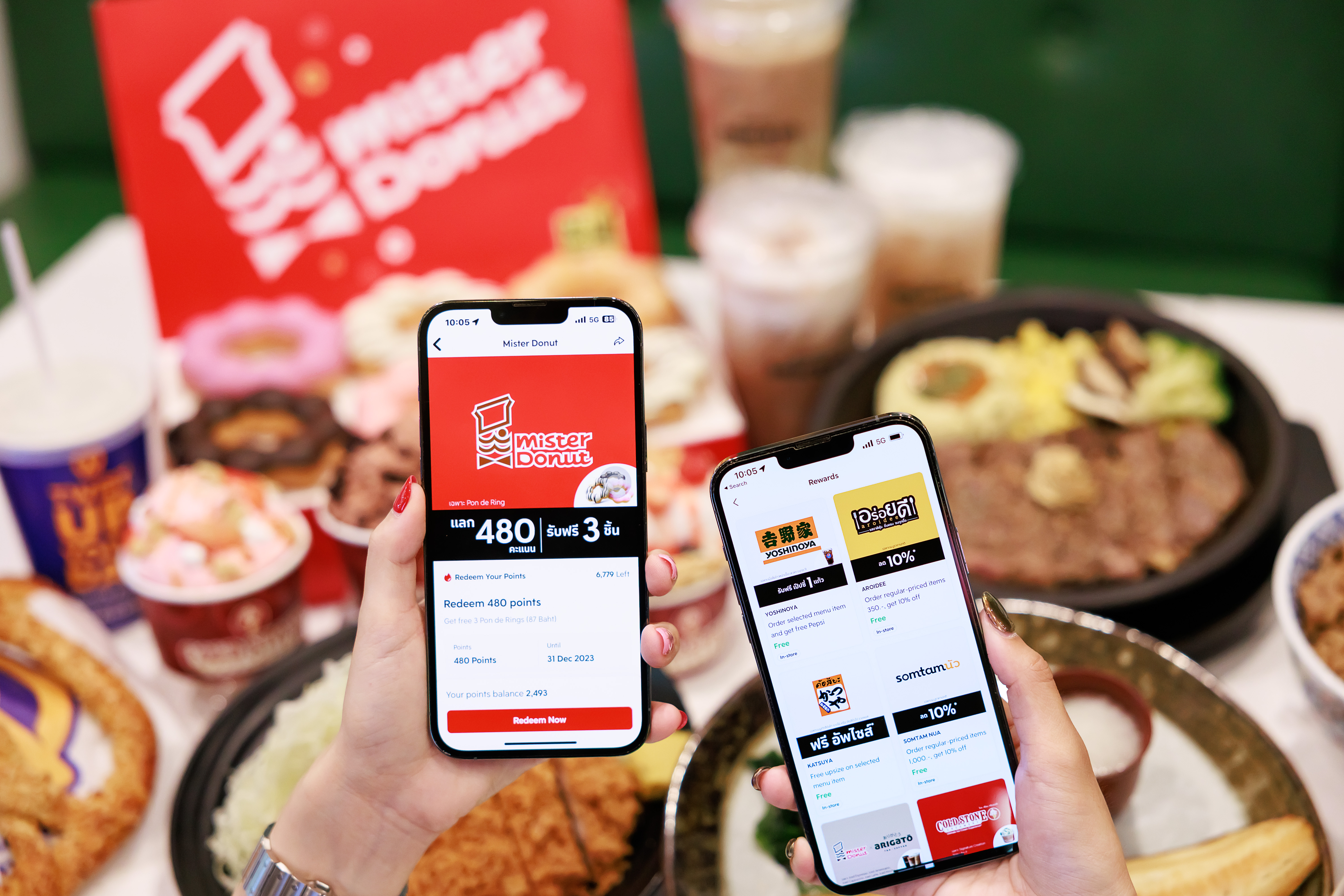- มิสเตอร์ โดนัท แลก 680 คะแนน รับฟรี โดนัท 4 ชิ้น (ชิ้นละ 29 บาท) มูลค่า 116 บาท, แลก 480 คะแนน รับฟรี พอน เดอ ริง 3 ชิ้น (ชิ้นละ 29 บาท) มูลค่า 87 บาท *สามารถกดรับสิทธิ์และใช้สิทธิ์ได้ในวันที่ 1 ก.พ. 66 – 31 ธ.ค. 66