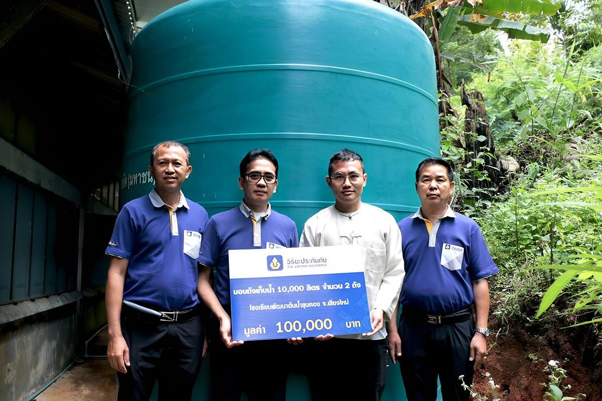 7 สิงหาคม 2566 : บุญฤทธิ์ เสมอมาศ ผู้เชี่ยวชาญด้านสินไหมทดแทน ฝ่ายปฏิบัติการภาค 1 (ภาคเหนือ) บริษัท วิริยะประกันภัย จำกัด (มหาชน) พร้อมด้วย คณะผู้บริหารและพนักงานศูนย์/สาขา ในสังกัด มอบถังเก็บน้ำ ขนาด 10,000 ลิตร จำนวน 2 ถัง พร้อมเงินสนับสนุนค่าอุปกรณ์ในการวางระบบท่อประปาเพิ่มเติม รวมมูลค่า 100,000 บาท ให้แก่ โรงเรียนพัฒนาต้นน้ำขุนคอง