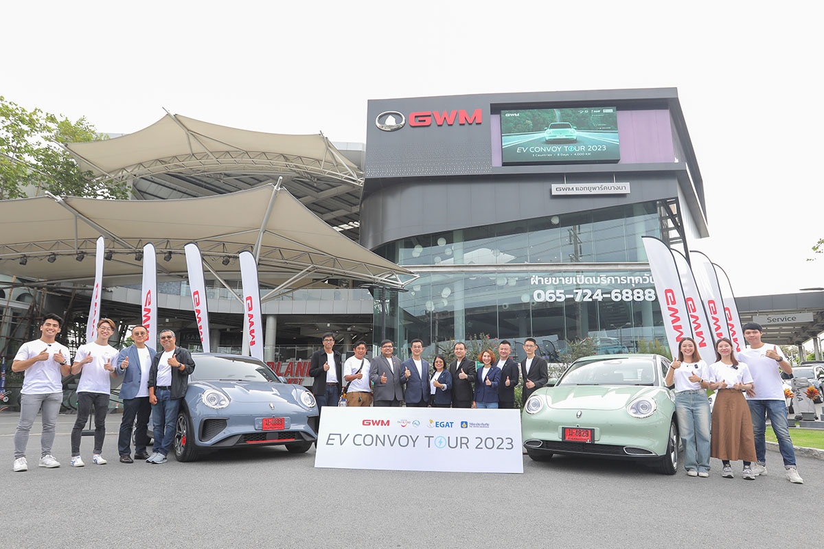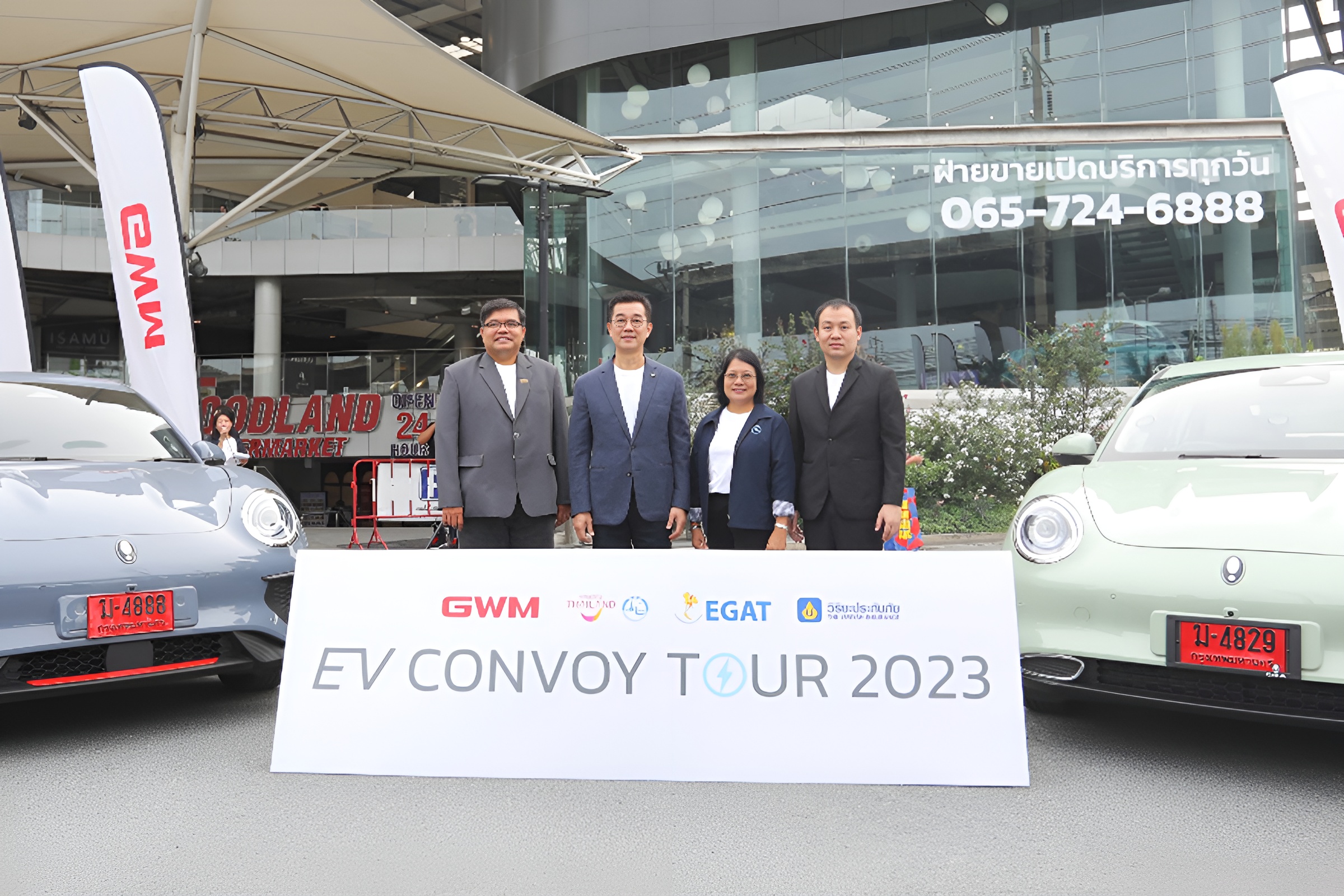9 สิงหาคม 2566 : สุรีพร พงษ์พานิช ผู้อำนวยการกองตลาดภาคกลาง การท่องเที่ยวแห่งประเทศไทย (ททท.) พร้อมด้วย วุฒิกร สุริยะฉันทนานนท์ รองประธานฝ่ายการตลาดประจำภูมิภาคอาเซียน เกรท วอลล์ มอเตอร์, นายวฤต รัตนชื่น ผู้ช่วยผู้ว่าการ Project Management Office การไฟฟ้าฝ่ายผลิตแห่งประเทศไทย (กฟผ.) และ ภาคภูมิ วิริยะพันธุ์ ผู้ช่วยกรรมการผู้จัดการ ผู้แทนจาก บริษัท วิริยะประกันภัย จำกัด (มหาชน) ร่วมแถลงข่าวพิธีปล่อยตัวคาราวานโครงการ GWM EV Convoy Tour 2023 : ORA Is On เปิดประสบการณ์คาราวานเจ้าเหมียวไฟฟ้า ORA Cat เส้นทางกรุงเทพฯ – สิงคโปร์ เพื่อส่งเสริมการท่องเที่ยวและกระตุ้นเศรษฐกิจ