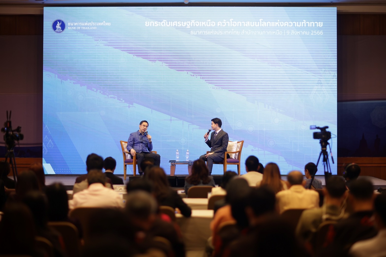 15 สิงหาคม 2566 : ธนาคารแห่งประเทศไทย สำนักงานภาคเหนือ (ธปท. สภน.) จัดงานสัมมนาทางวิชาการ ประจำปี 2566 “ยกระดับเศรษฐกิจเหนือ คว้าโอกาสบนโลกแห่งความท้าทาย” ในวันพุธที่ 9 สิงหาคม 2566 เวลา 08.30-12.00 น. ณ อาคารอเนกประสงค์ ธปท. สภน. จ.เชียงใหม่ เพื่อให้ภาคธุรกิจและประชาชนในภาคเหนือได้รับทราบทิศทางเศรษฐกิจการเงิน นโยบาย ธปท.