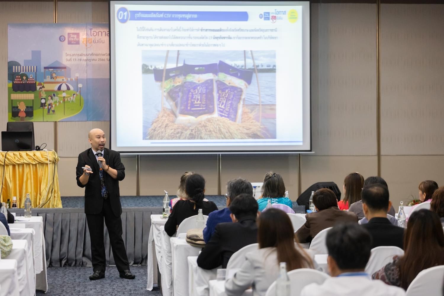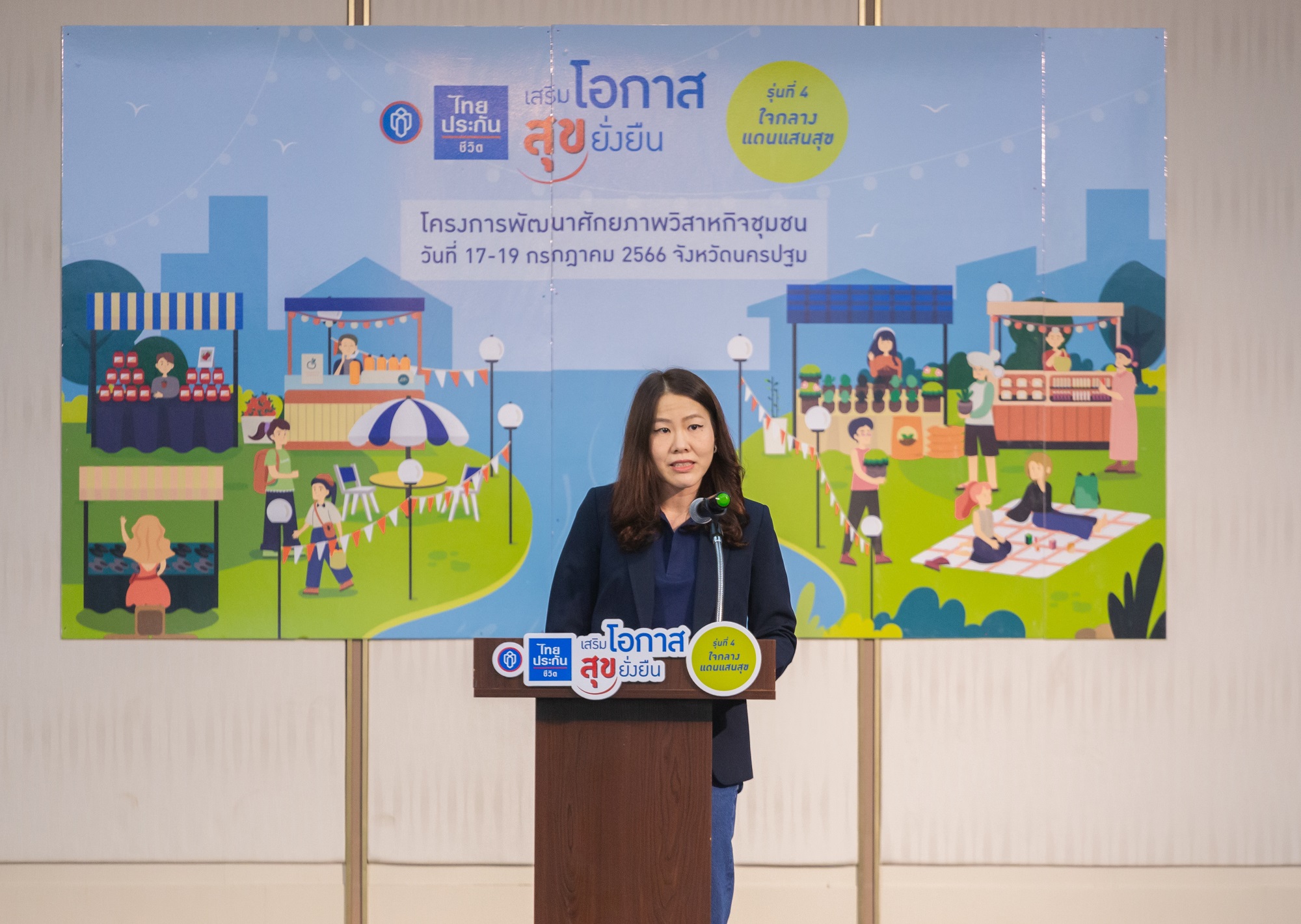 และในปี 2566 บริษัทฯ ได้ดำเนิน “โครงการไทยประกันชีวิต เสริมโอกาส สุขยั่งยืน รุ่นที่ 4 ใจกลางแดนแสนสุข” โดยจัดกิจกรรมอบรมเชิงปฏิบัติการแก่ตัวแทนวิสาหกิจชุมชนผู้ผลิตและจัดจำหน่ายผลิตภัณฑ์ด้านสุขภาพ และการท่องเที่ยวเชิงเกษตรในพื้นที่ภาคกลาง ภาคตะวันออก และภาคตะวันตก จำนวน 26 จังหวัด รวม 39 ราย พร้อมด้วยตัวแทนเจ้าหน้าที่สำนักงานส่งเสริมและพัฒนาการเกษตร และเจ้าหน้าที่สำนักงานเกษตรจังหวัดเข้าร่วมกิจกรรม เพื่อนำความรู้ที่ได้รับไปปรับใช้และพัฒนาวิสาหกิจชุมชนในพื้นที่ นอกจากนี้ ผู้บริหารฝ่ายขายของบริษัทฯ ยังร่วมเป็นโค้ชธุรกิจให้คำแนะนำและติดตามผลเชิงปฏิบัติการอย่างใกล้ชิด เพื่อเพิ่มทักษะด้านการขาย การบริหารจัดการทางการเงิน และการสื่อสารการตลาดผ่านช่องทางออนไลน์