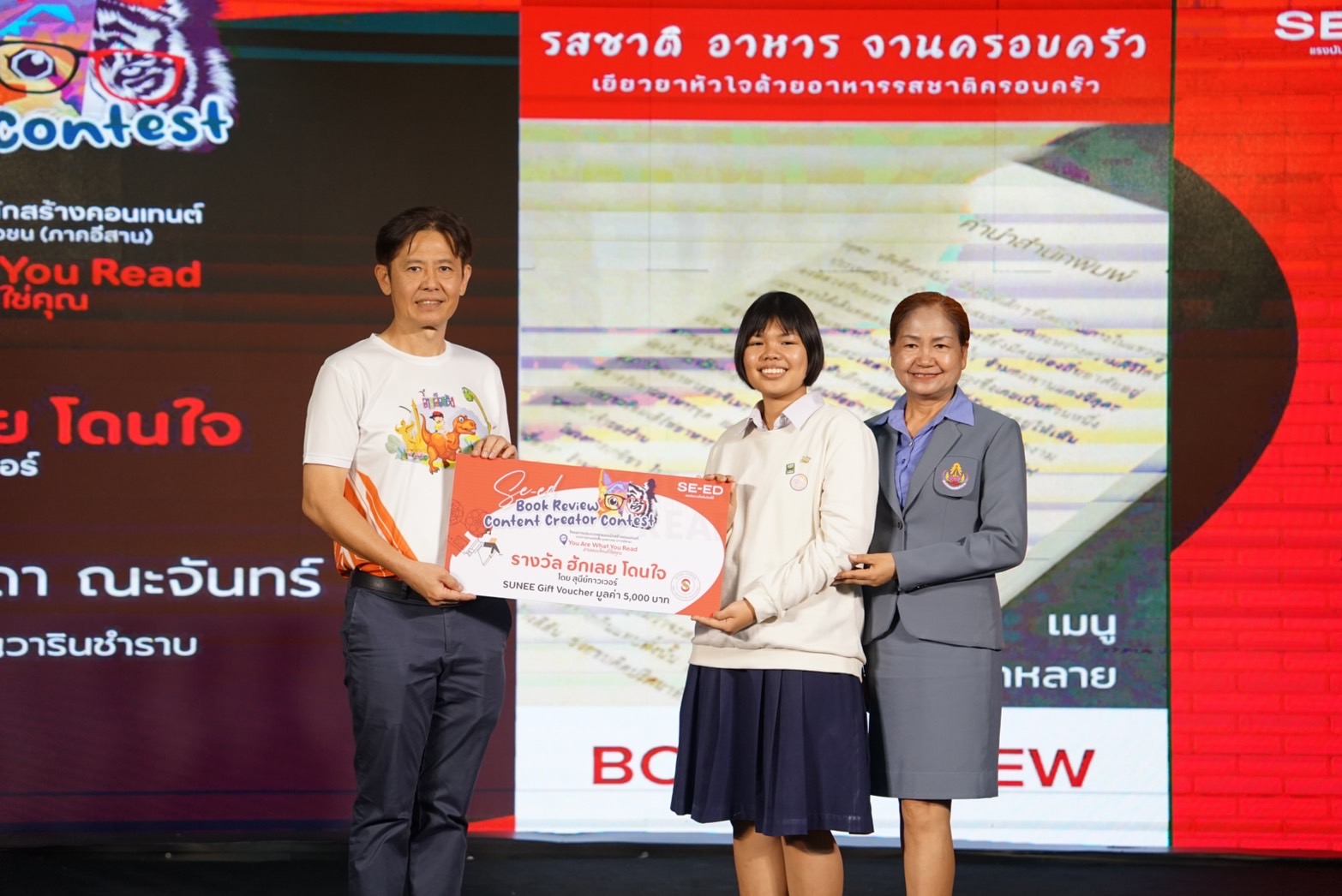 กรุงเทพฯ 21 สิงหาคม 2566 : “ซีเอ็ด” จัดงานประกาศผลและมอบรางวัลให้แก่ผู้ชนะเลิศในโครงการ SE-ED Book Review Content Creator Contest การประกวดสุดยอดนักสร้างคอนเทนต์จากการอ่านหนังสือรุ่นเยาวชน (ภาคอีสาน) ภายใต้หัวข้อ ‘YOU ARE WHAT YOU READ อ่านแบบไหนที่ใช่คุณ’ เพื่อสนับสนุน และสร้างแรงบันดาลใจให้แก่เยาวชนคนรุ่นใหม่ที่มีความสนใจและรักการอ่านในยุคดิจิทัล ได้แสดงความสามารถในการแนะนำหนังสือเพื่อสร้างสังคมรักการอ่าน