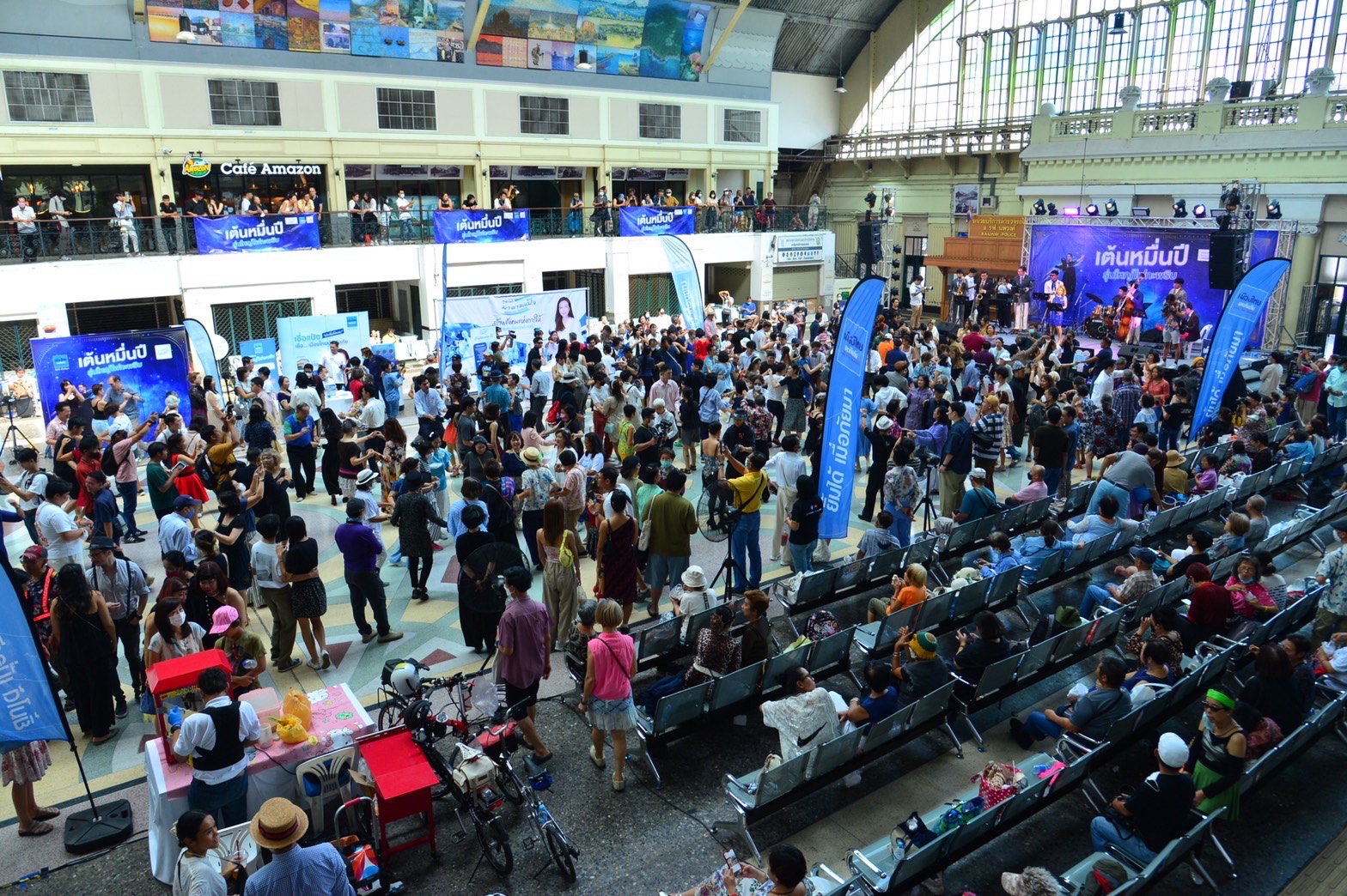 สำหรับภายในงาน “เต้นหมื่นปี รุ่นใหญ่ไฟกะพริบ” ณ สถานีรถไฟหัวลำโพง โดยทาง “การรถไฟแห่งประเทศไทย” ได้แปลงโฉมพื้นที่เป็น “ฟลอร์เต้นกลางเมือง” สร้างความสนุกสนานแก่บรรดาผู้เข้าร่วมกิจกรรมฯ ให้ออกมาแดนซ์สุดเหวี่ยงไปพร้อมกับ The Jelly Roll Dance Club และโชว์เปิดสุดจี๊ดจาก The Bobbin' Berries พร้อมด้วย The stumbling swing out ที่มาบรรเลง swing jazz กันแบบสดๆ นอกจากนี้ “มูลนิธิมาดามแป้ง” ในฐานะผู้ร่วมสนับสนุนงาน ยังใจดีเปิดเวทีประกวดการแต่งกาย ทั้งแบบเดี่ยวและแบบทีม โดยให้ประชาชนเข้าฟรี ไม่มีค่าใช้จ่าย เพื่อคนทุกวัยได้ทำกิจกรรม สร้างคอมมูนิตี้ร่วมกัน