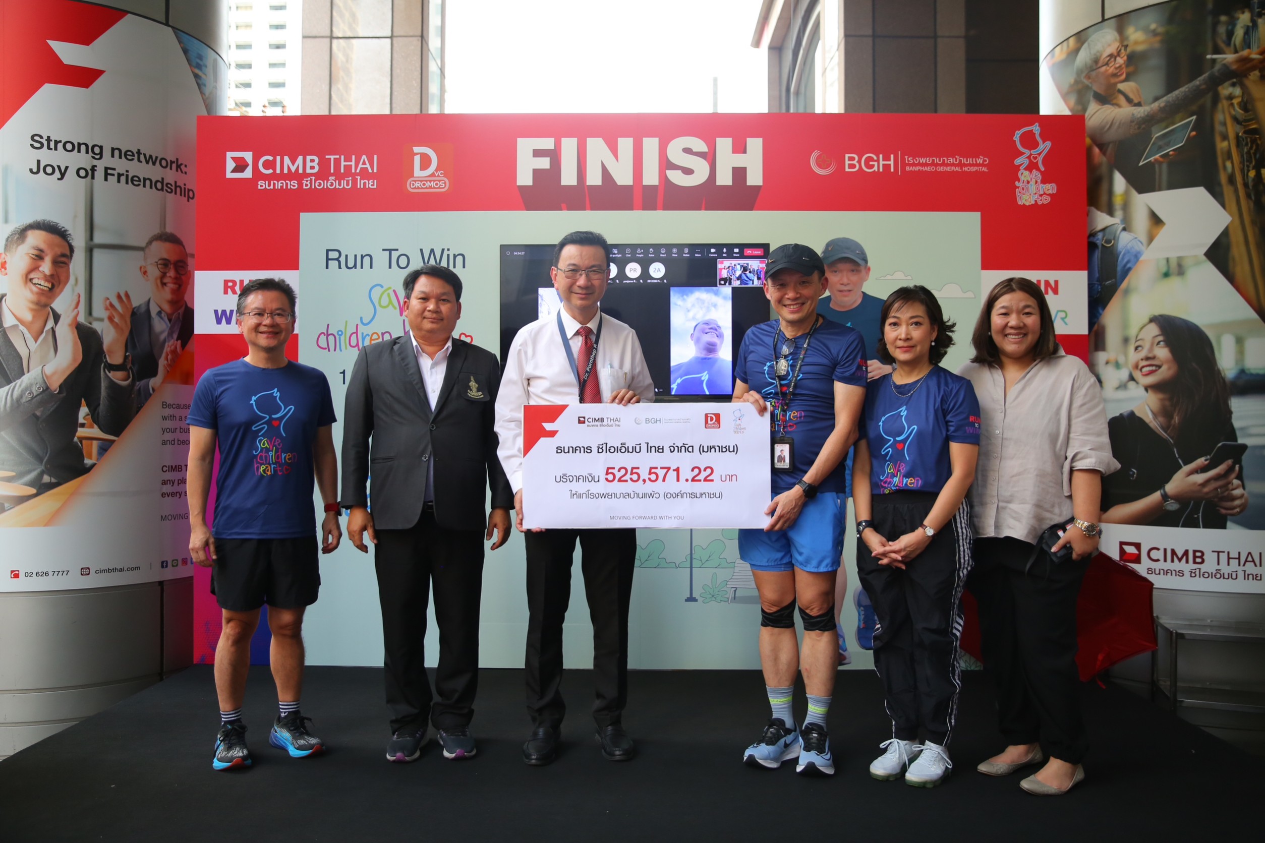 หลังเสร็จสิ้นโครงการ มีพนักงาน 1,500 คนทั่วประเทศ ร่วมกันวิ่งเพื่อระดมเงินบริจาคและออกกำลังกายเพื่อสุขภาพ ได้ระยะทางสะสมรวมทั้งสิ้น 65,800 กิโลเมตร บรรลุเป้าหมายที่ตั้งไว้ อีกทั้งธนาคารผลิตเสื้อ Save Children Heart จำหน่ายให้พนักงานเป็นที่ระลึก รายได้หลังหักค่าใช้จ่ายเมื่อรวมรายได้จากการวิ่ง เป็นเงินทั้งสิ้น 525,571 บาท โดย พอล วอง ชี คิน ซีอีโอ เป็นตัวแทนธนาคาร ส่งมอบเงินจำนวนดังกล่าว ให้แก่โรงพยาบาลบ้านแพ้ว และได้รับเกียรติจากนายแพทย์พรเทพ พงศ์ทวิกร ผู้อำนวยการโรงพยาบาล เป็นผู้รับมอบ และนายประจวบ น้อยอามาตย์ ผู้ช่วยผู้อำนวยการ สำนักงานเขตปทุมวัน ร่วมเป็นสักขีพยาน เมื่อวันที่ 18 สิงหาคม 2566 ณ ธนาคาร ซีไอเอ็มบี ไทย สำนักงานใหญ่ ถนนหลังสวน