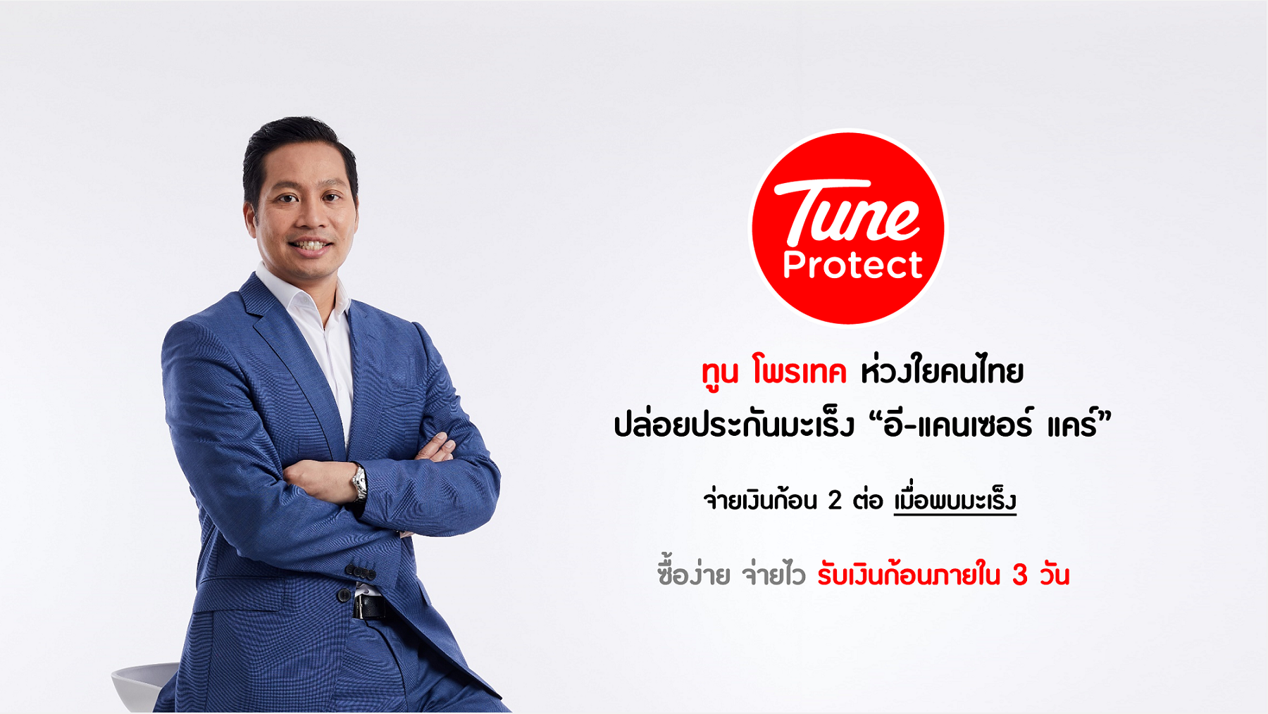 ทูน โพรเทค ไทยแลนด์ ได้เล็งเห็นถึงความสำคัญของอัตราการเกิดโรคมะเร็งที่พุ่งสูงขึ้นอย่างต่อเนื่องทุกปี จึงได้ออกผลิตภัณฑ์ใหม่ อย่างประกันมะเร็ง อี-แคนเซอร์ แคร์ บาย ทูน โพรเทค เพื่อมอบความคุ้มครองที่ตอบโจทย์ให้กับกลุ่มลูกค้าที่ต้องการแผนสำรองให้ชีวิตตนเองและครอบครัวที่รัก เมื่อพบ “มะเร็งก็ไม่ล้มละลาย” รับเงินก้อน เจอ จ่าย ให้หลายจบ คุ้มครองมะเร็ง 2 ระยะ จ่ายเงินก้อน 2 ต่อเมื่อพบมะเร็ง ทั้งระยะไม่ลุกลามและลุกลาม สมัครได้ตั้งแต่อายุ 18 – 60 ปีบริบูรณ์ (ต่ออายุได้ถึง 64 ปี และคุ้มครองถึงอายุ 65 ปี) แค่ตอบคำถามสุขภาพ 3 ข้อ ก็สมัครผ่านเว็บไซต์ www.tuneprotect.co.th ได้เลย